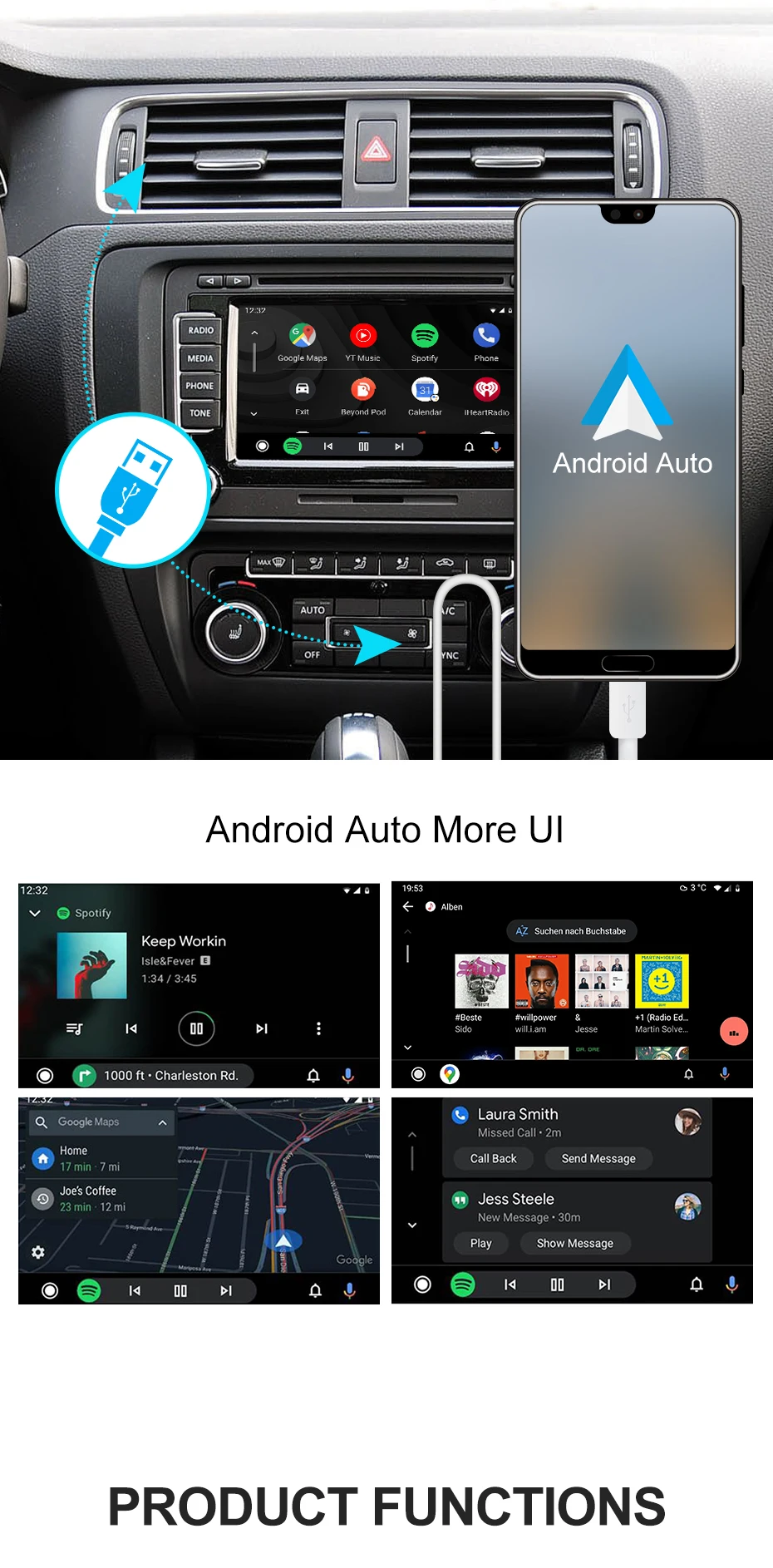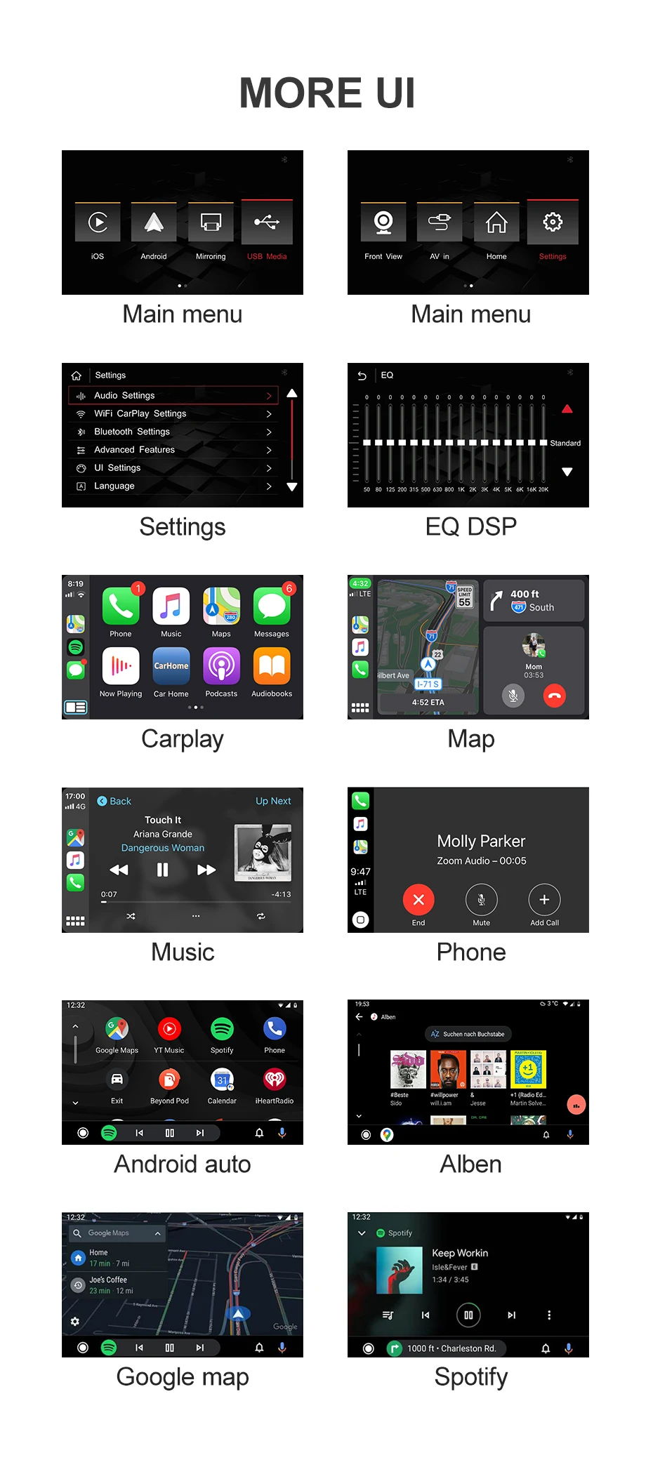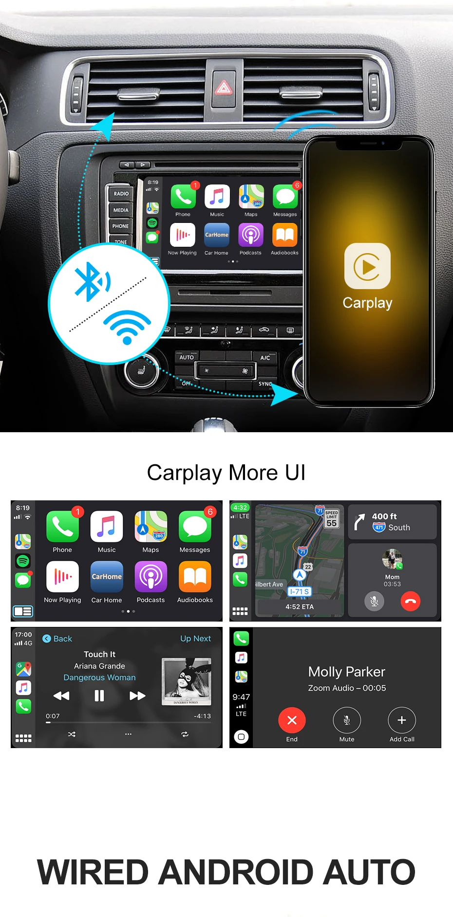 > С беспроводной carplay, наслаждайтесь oem голосовой командой, siri, навигацией, онлайн-музыкой и телефонным звонком и т. д. функция с iphone.
