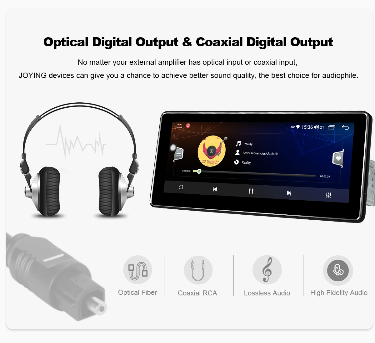 Новый JOYING блок теперь поставляется с оптическим SPDIF цифровой аудиовыход * коаксиальный цифровой выход. Для максимального качества звука вы можете напрямую подключить внешний усилитель/DSP к цифровому выходу SPDIF; Если ваш внешний усилитель/DSP не поставляется с входом SPDIF, вам нужно будет подключить усилитель/DSP через FL/FR out & RL/RR out.
