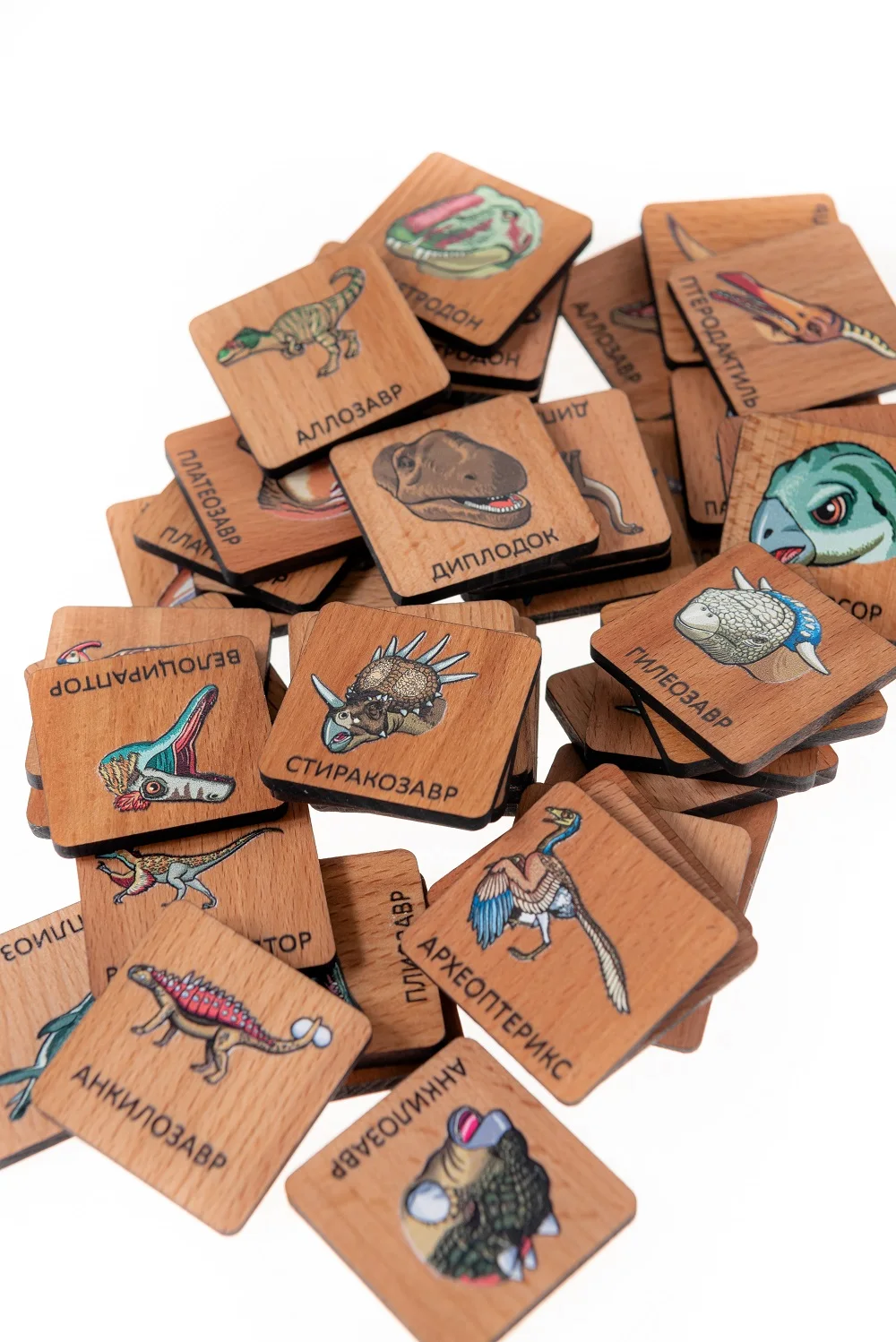 В наборе "Динозавры" 48 фишек с изображениями динозавров.