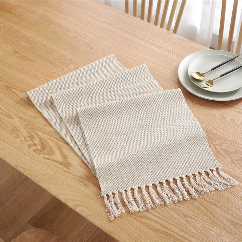 Плотный и прочный материал-отборный высококачественный хлопок, который делает домашнюю столешницу толстой и прочной, с нежными кисточками с обеих сторон. (Примечание: длина включает длину кисточки, фактический размер будет на 1-2 дюйма больше, с учетом небольшой усадки после первой стирки).