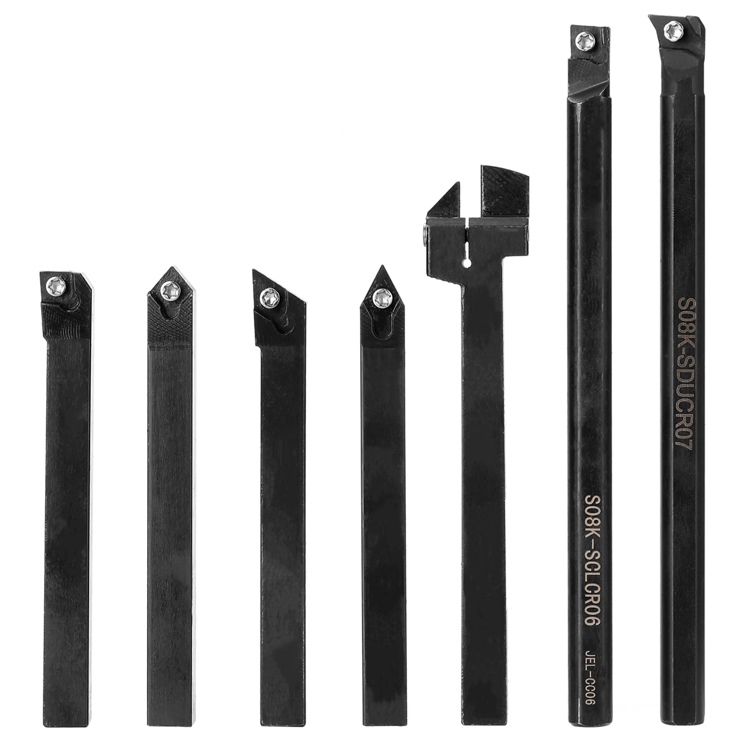 Это набор высококачественных токарных инструментов, идеальный профилирующий стержень для полуотделочных и отделочных операций. Тонкая прочность и твердость, длительный срок службы. Тонкая Ударная вязкость при низкой температуре, улучшенная поверхность блеска режущей части.
