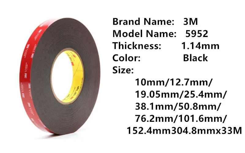 3 м™VHB™Акриловая пенная лента 5952 с двойным покрытием чувствительные к давлению клейкие ленты для склеивания широкого спектра подложек, включая более низкие поверхностные энергетические материалы, такие как краски с порошковым покрытием и пластмассы. Пена предназначена для увеличения контакта с поверхностями.