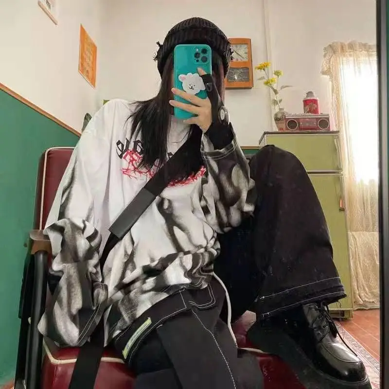 Футболка в стиле Харадзюку женские топы с длинным рукавом новинка 2022 осенняя