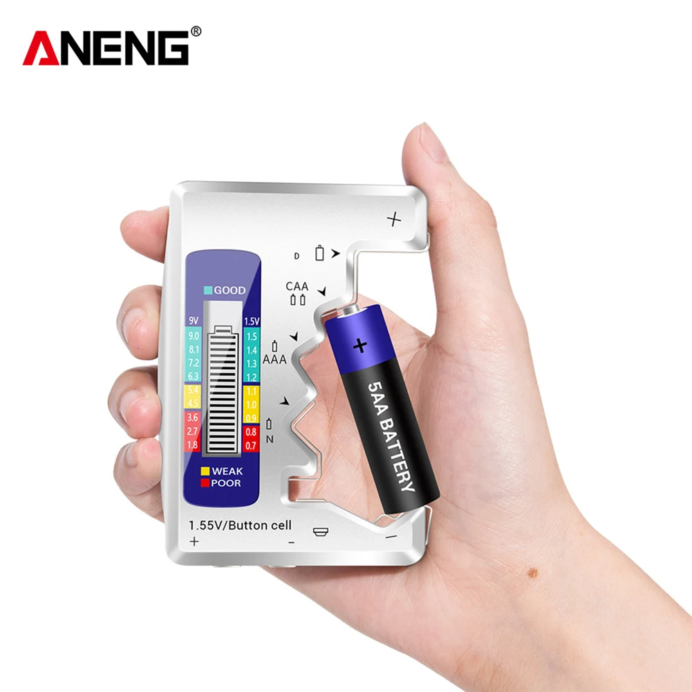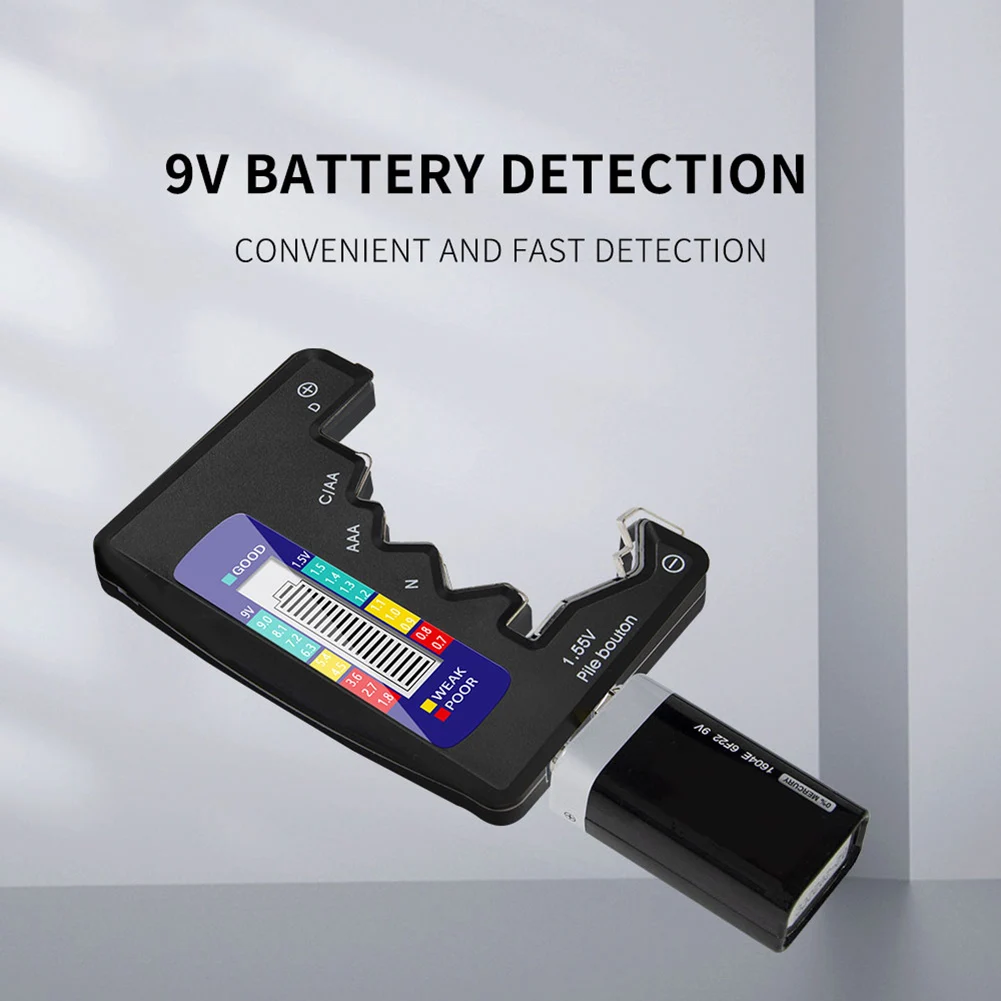 Цифровой тестер емкости батареи Универсальная Кнопка AAA AA анализатор нагрузки на ячейку ЖК-дисплей измеритель тестирования Характеристика: Абс изоляционный пластик, легкий и компактный, простой в использовании. ЖК-дисплей с индикатором мощности, тест на мощность четкий с первого взгляда. Могут быть обнаружены различные типы батарей. Спецификация: Материал: АБС-пластик Размеры: 92,3*61,9*14 мм/3.6x2.4x0.55in Измеряемые типы: d Тип, c Тип, AA батарея, AAA батарея, n Тип No.8, 1,5 V кнопочный элемент, 9V батарея Цвет: черный Примечание: Тестирование аккумуляторной батареи не поддерживается. В связи с различиями мониторов и эффектами освещения реальный цвет товара может немного отличаться от цвета на фотографиях. Спасибо! Возможны отклонения в 1-2 см вследствие измерений вручную.