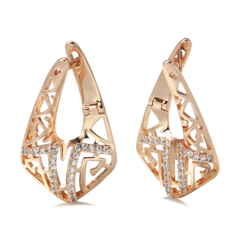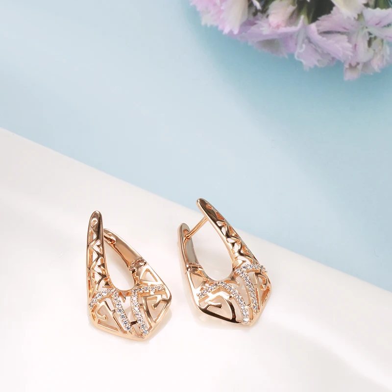Kinel, необычный тренд, 585, розовое золото, серьги для женщин, микро воск, инкрустация, натуральный циркон, полые серьги, винтажные модные ювелирные изделия