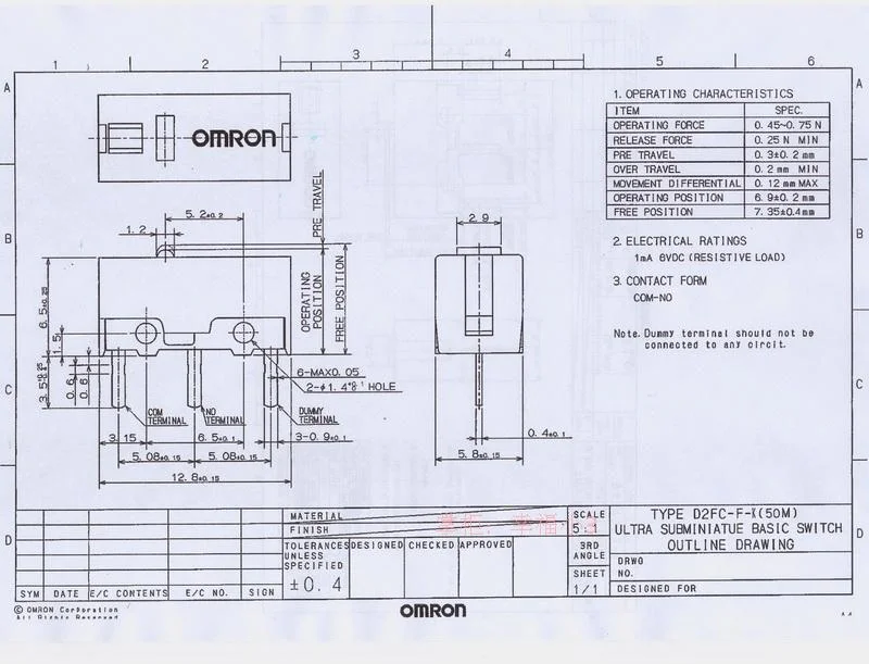 D2FC-F-7N 20 м имеет срок службы в 20 миллионов раз. Более поздние ощущения немного прочнее и ломче, с контактами из серебряного сплава и слегка толще шрапнели.