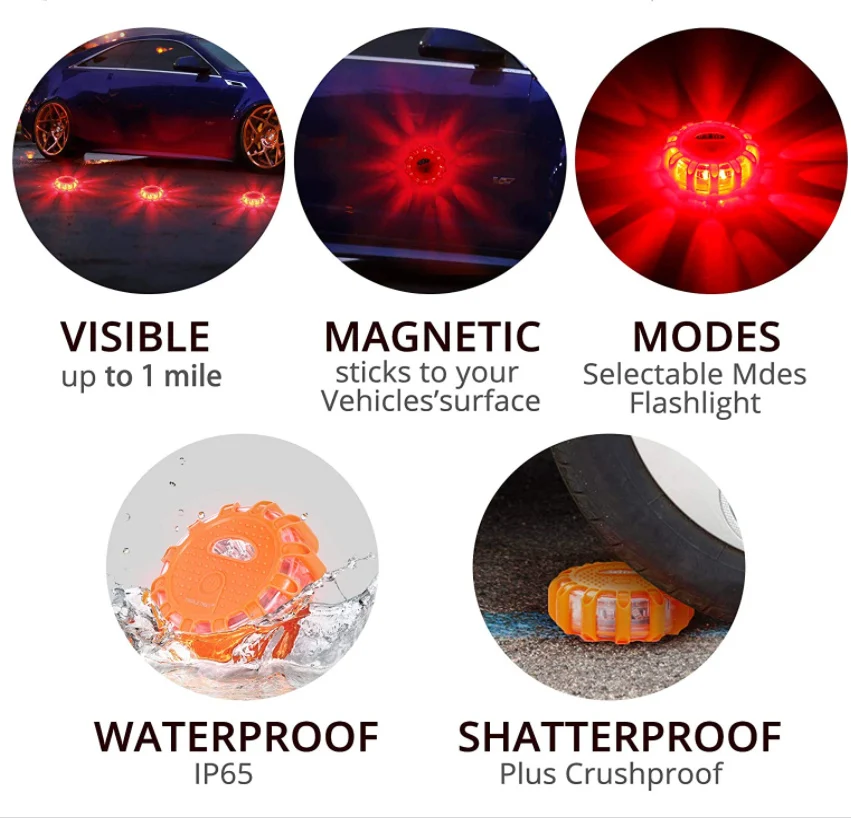 9 PACK USB Rechargeable LED Road Flares Emergency Lights,Roadside Warning Car Safety Beacon Flashing Disc Flare Kit-Outdoor Lighting!