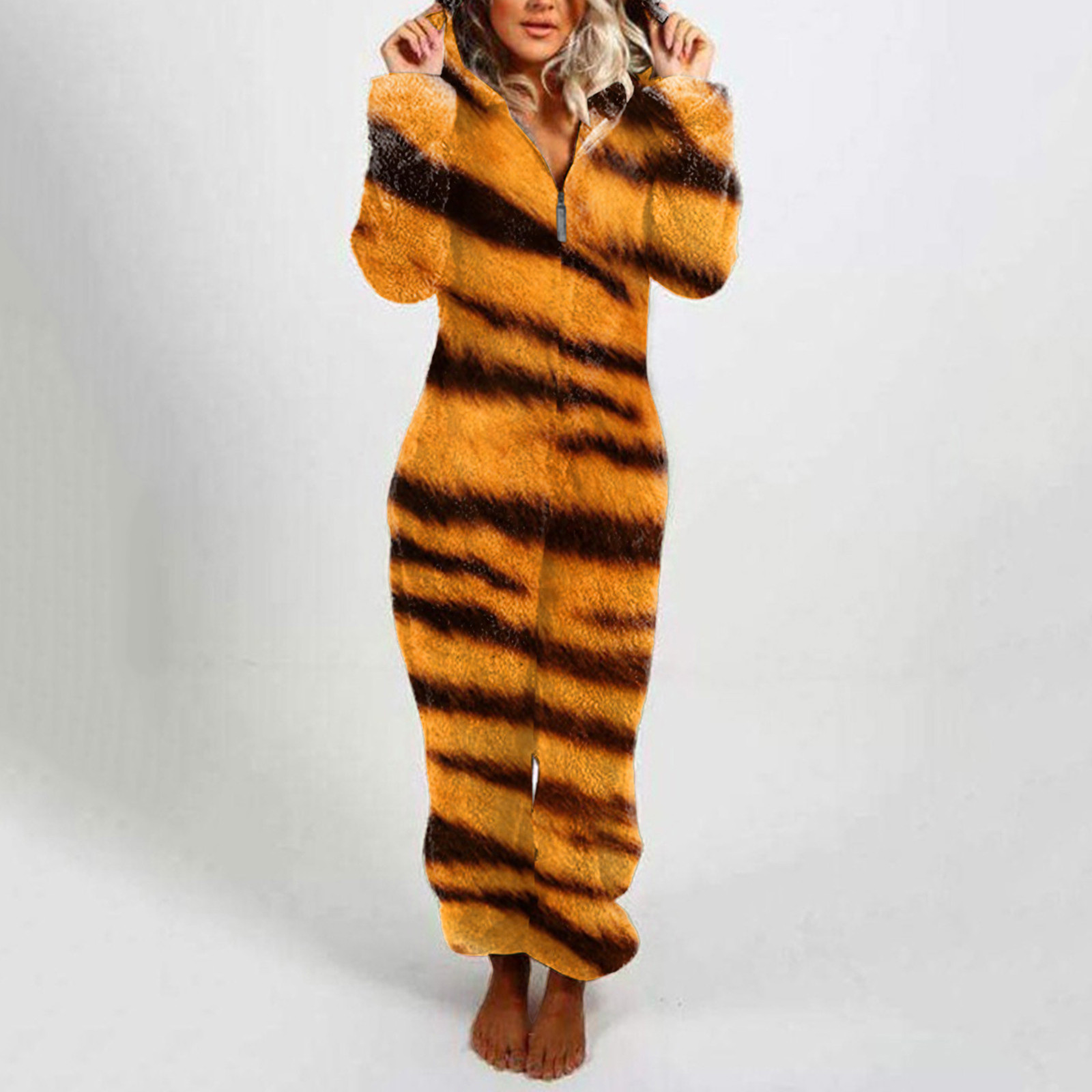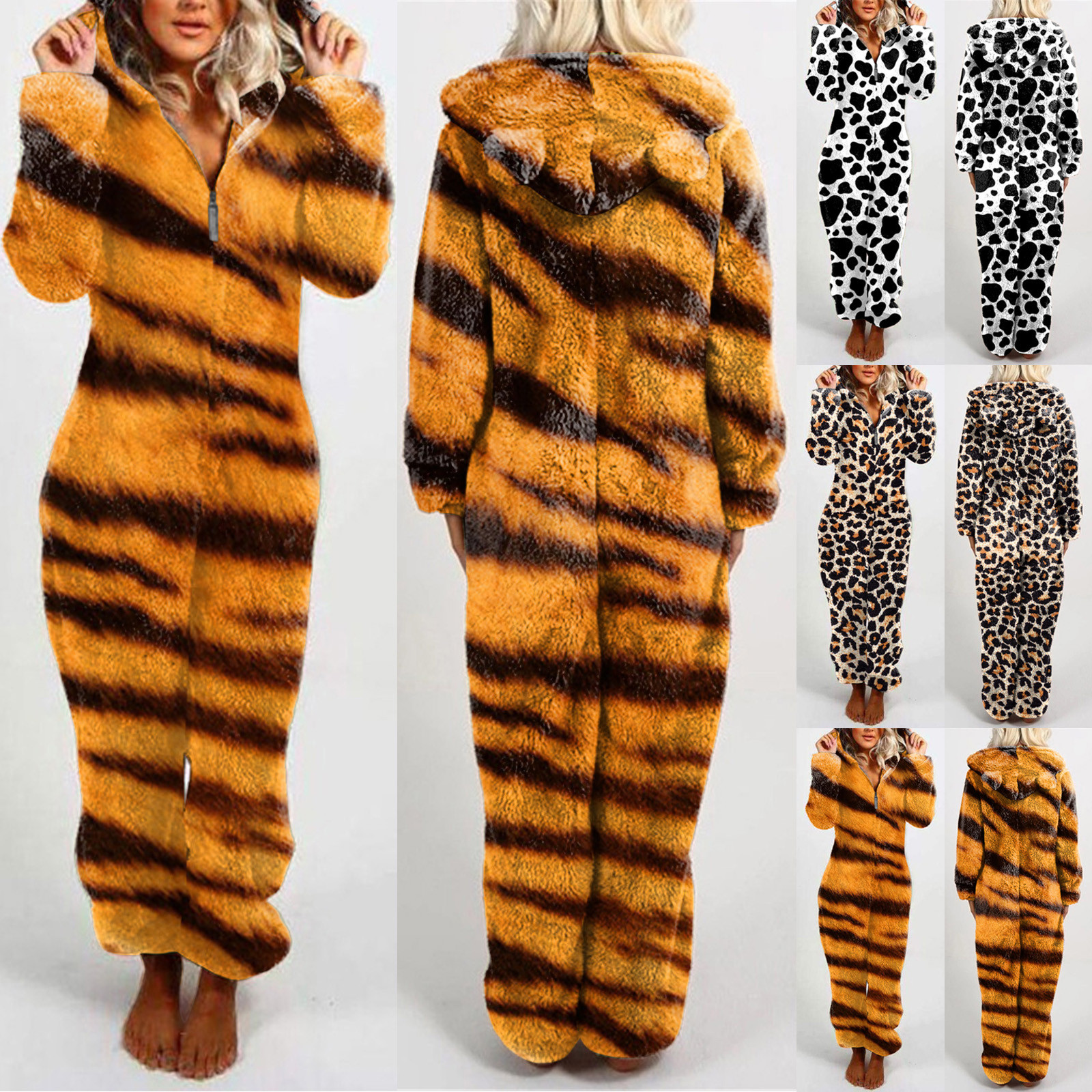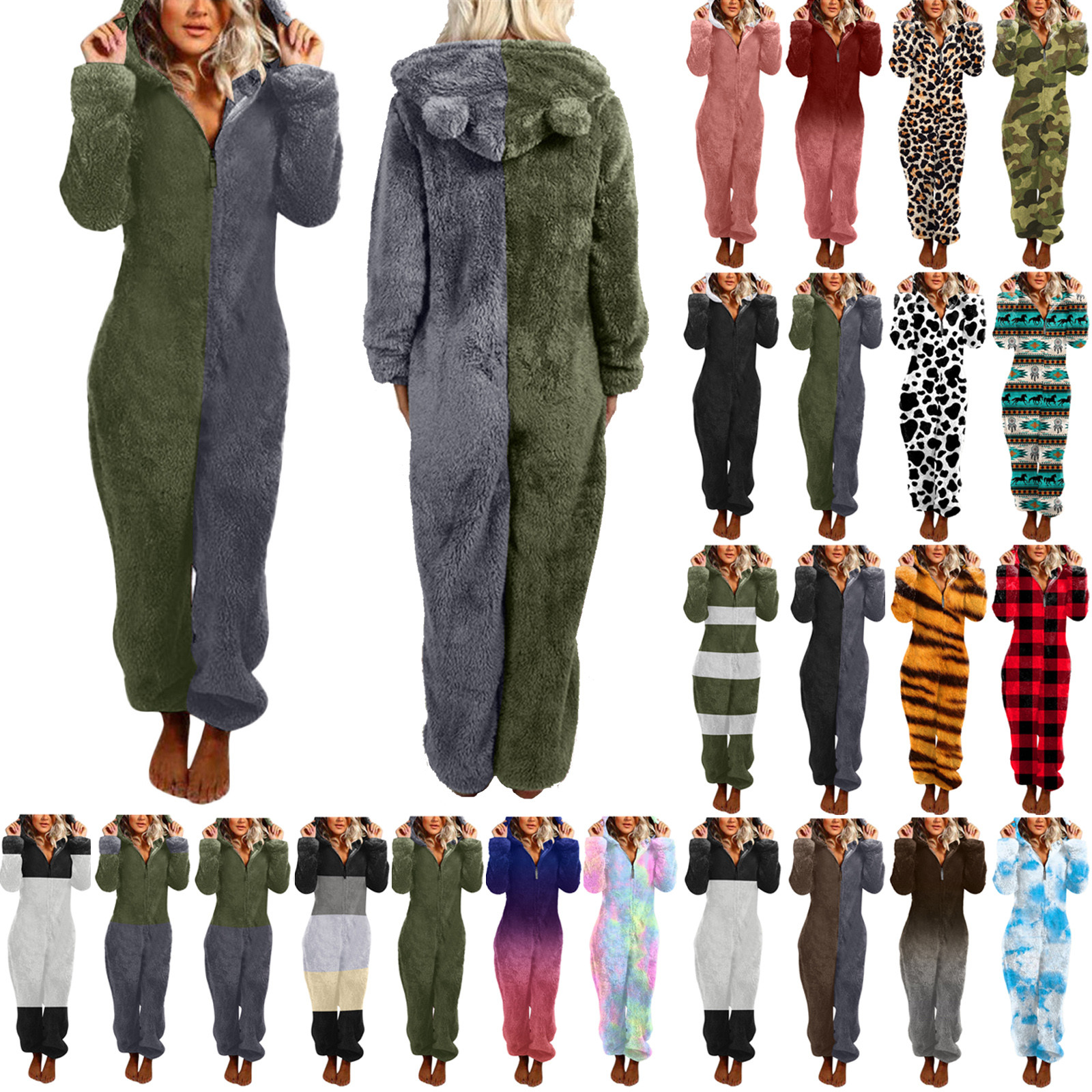Женский комбинезон с капюшоном и длинным рукавом, пижама, Повседневная зимняя теплая одежда для сна