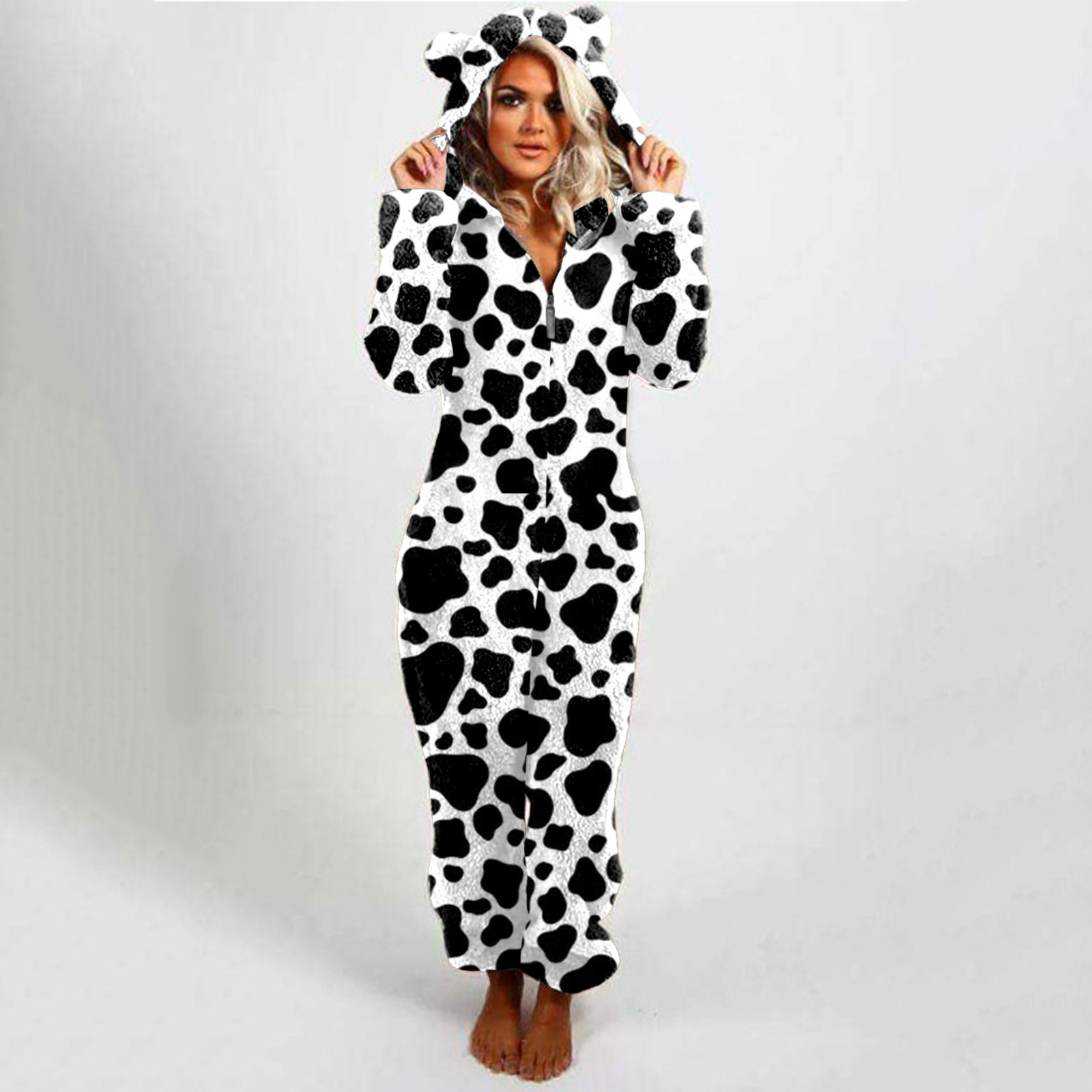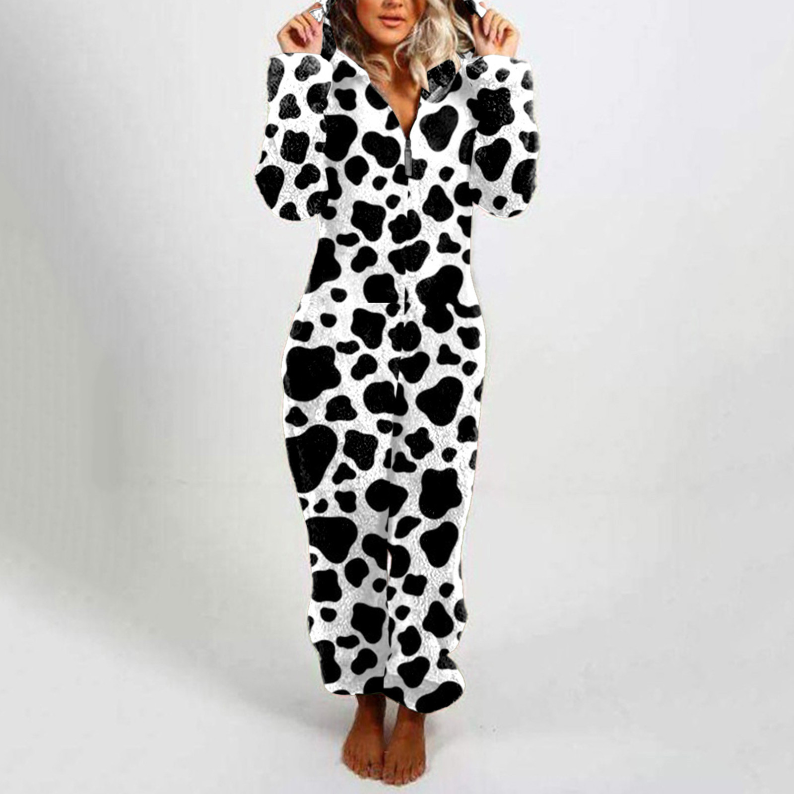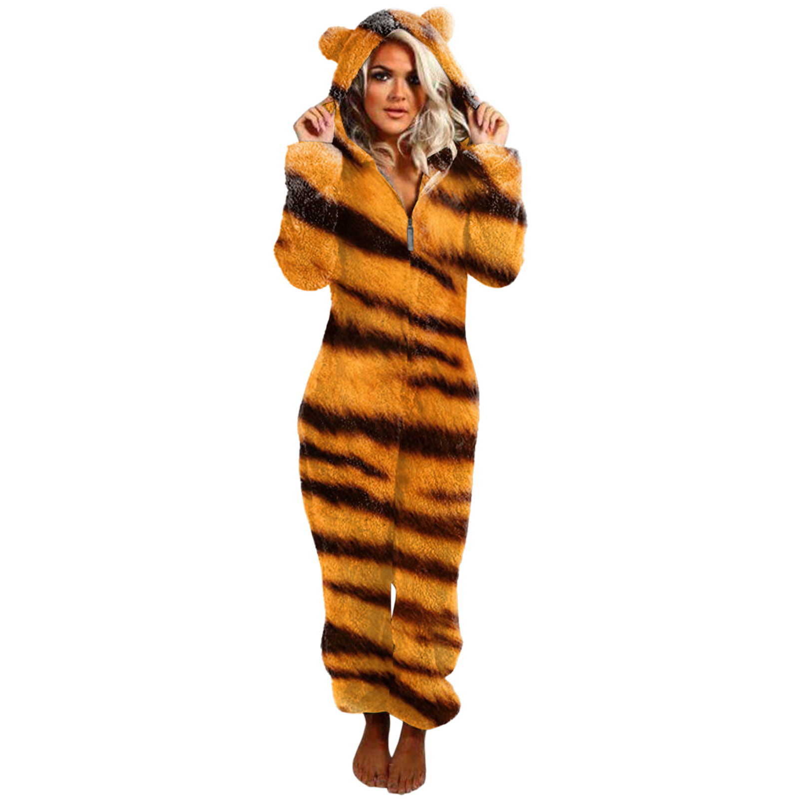 Женский комбинезон с капюшоном и длинным рукавом, пижама, Повседневная зимняя теплая одежда для сна