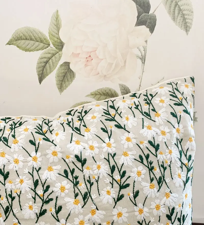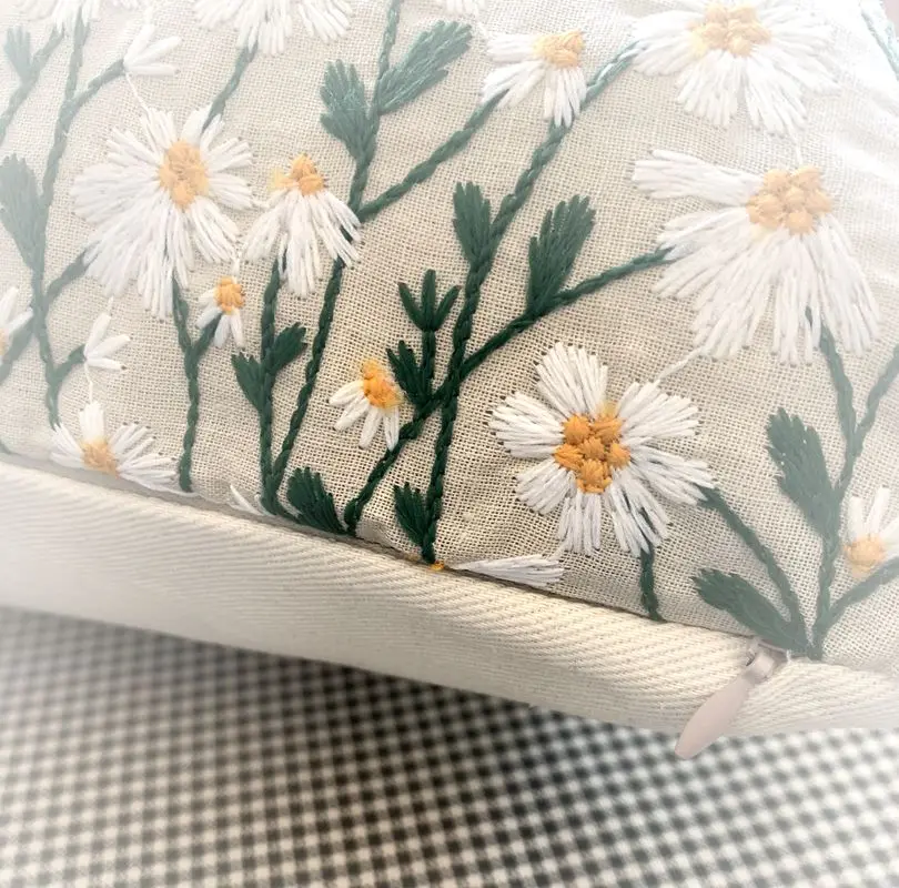 Вышитая ромашкаДекоративные подушки Цветок Наволочка пледы подушка для дивана кровати автомобиля украшение дома