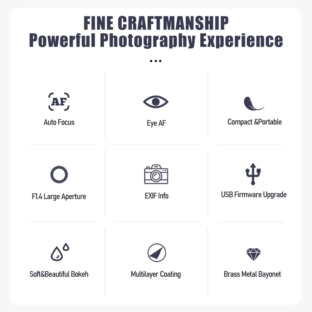 · Полный кадр, 23/33/56 мм фокусное расстояние, F1.4 фиксированным фокусным расстоянием большой апертурой.