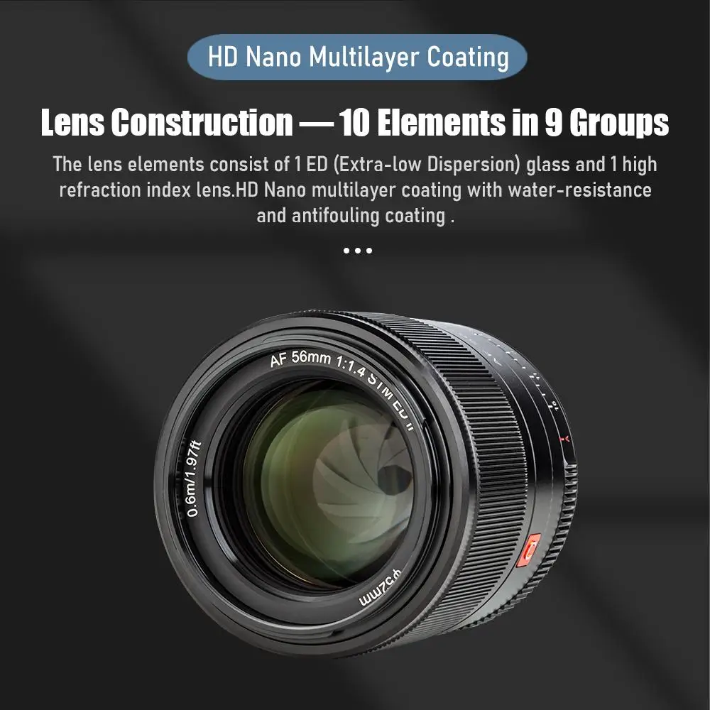 Объектив VILTROX AF 56 мм F1.4 E Auto Focus prime-это объектив с большой диафрагмой, предназначенный для камеры Sony E-mount.