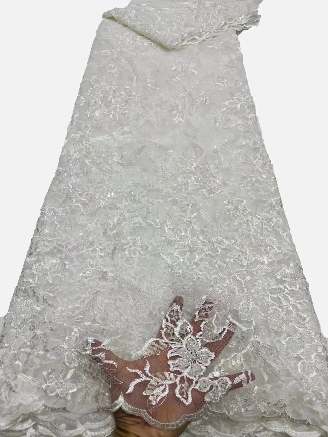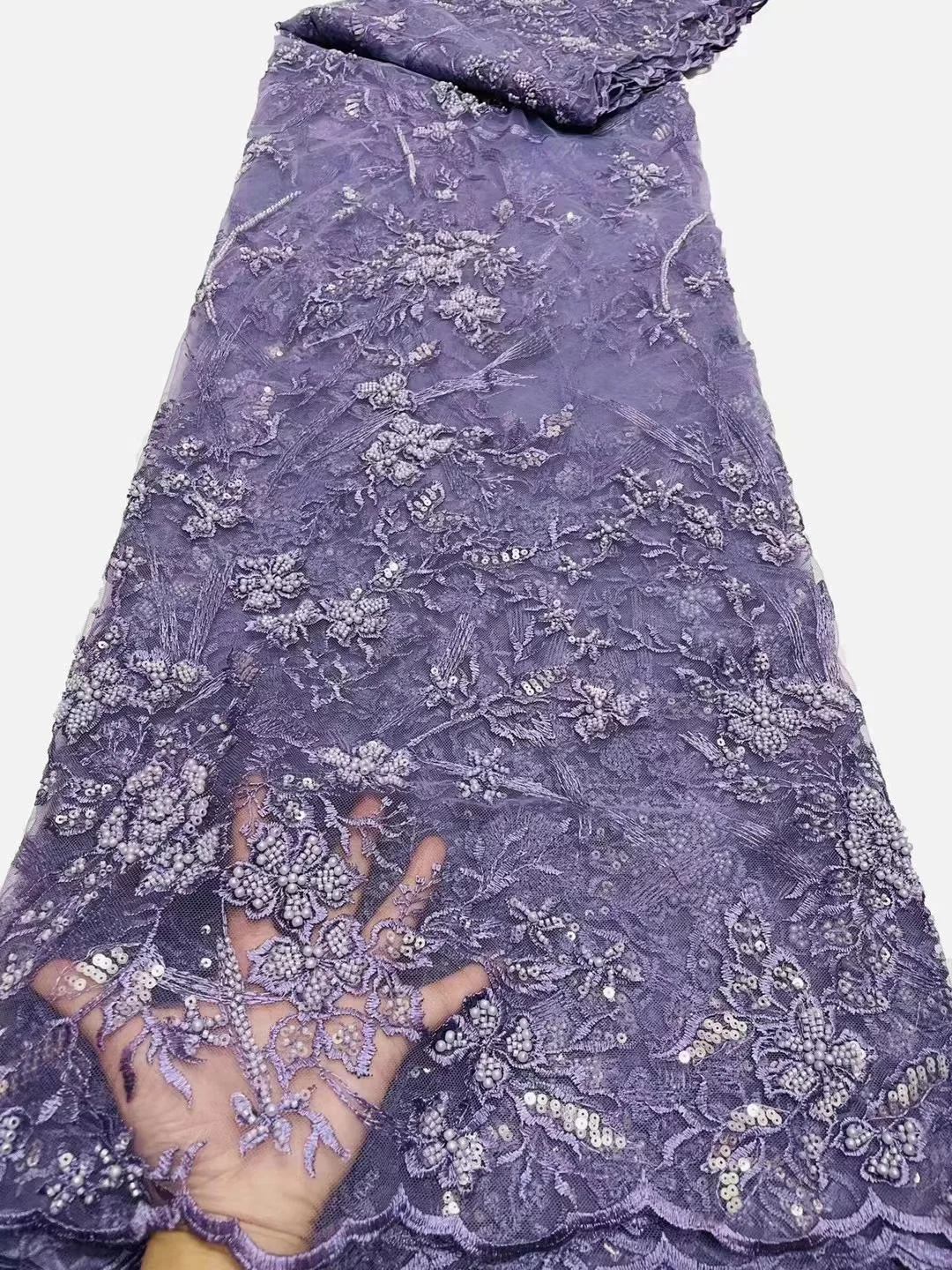 Горячая Распродажа бисера/блестки кружева ткани в африканском стиле французский Тюлевая сетчатая кружевная ткань Роскошные Тяжелая сделанная вручную бисером кружевное нигерийское кружево AF