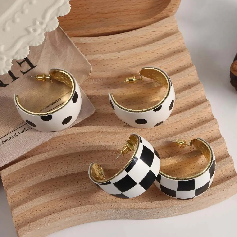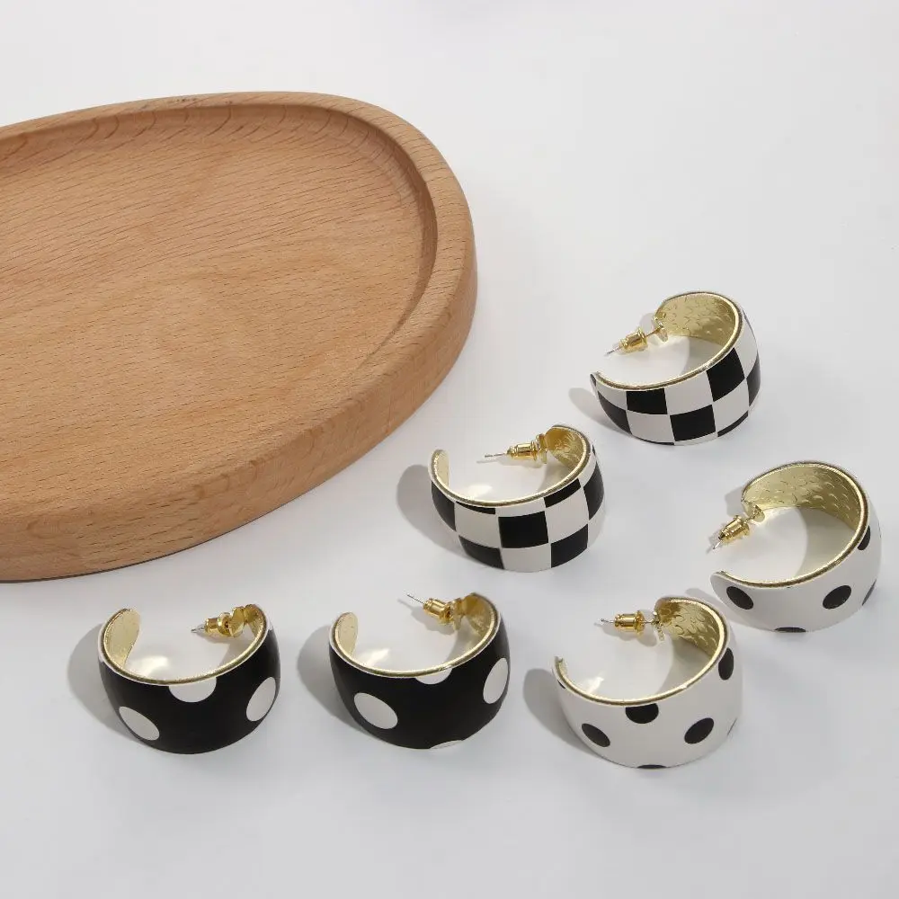 Модный дизайн, 100% новый бренд Материал: сплав Размеры: 3,5*2 см Пол: женщин, девочек Цвет: черный и белый, черный, белый Назначение: подарки, вечерние, повседневные Подарок для: подруги/жены/мамы/Женщины Посылка включает в себя: 1 пара сережек