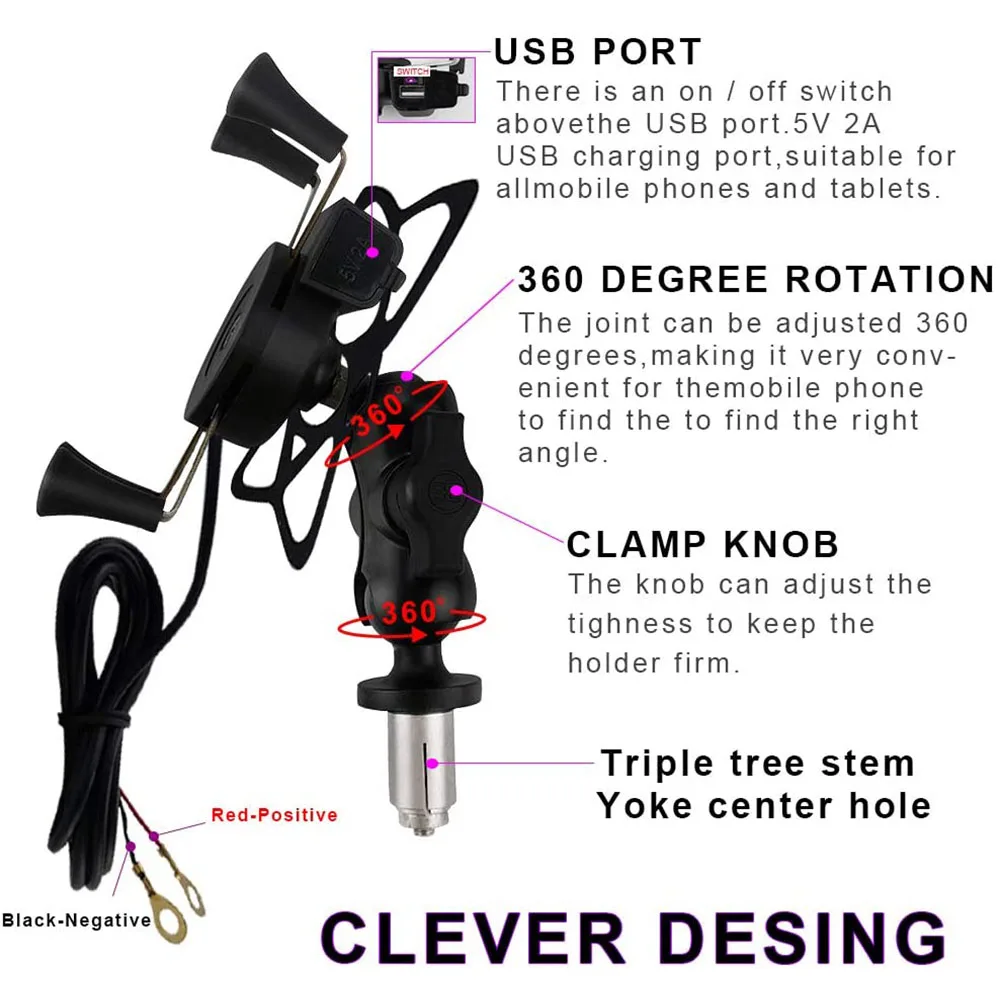 【USB charging port】-Phone holder with charger. Just connect the charging cable to the motorcycle, you can easily charge the mobile phone. Solved the problem that the navigation cannot be used because the phone is out of power..