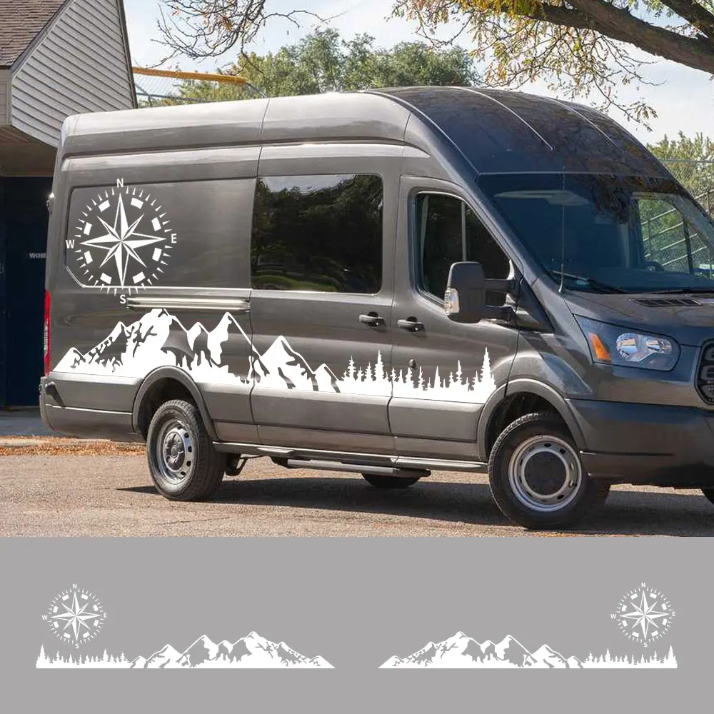 4 шт. наклейки на боковые двери автомобиля Camper Van Motorhome компас графика для Ford Transit MK6 MK7 MK8