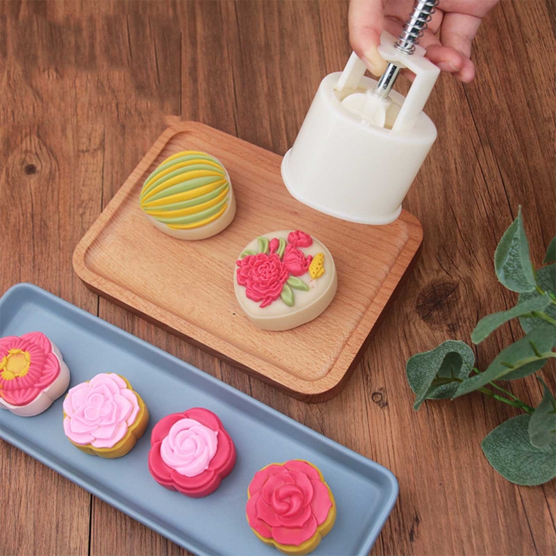 Несколько узоров: каждый тип формы для лунного торта имеет несколько уникальных цветочных штампов, которые обеспечивают плавные линии без заусенцев на краю штампа печенья.