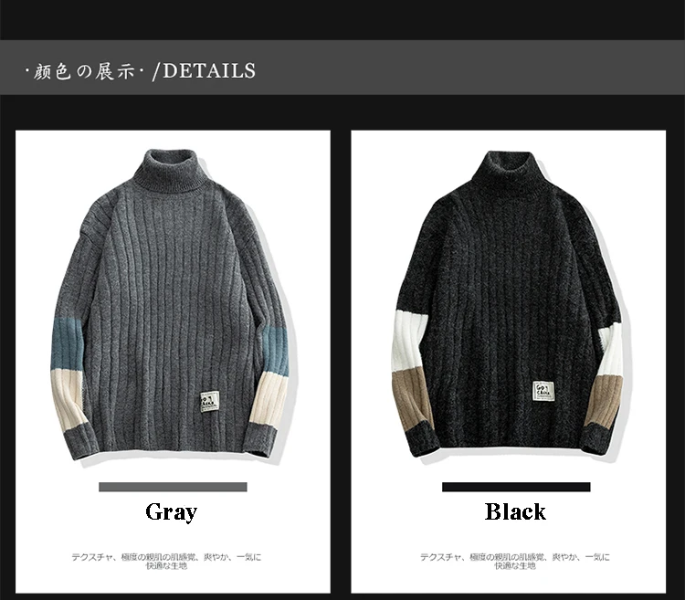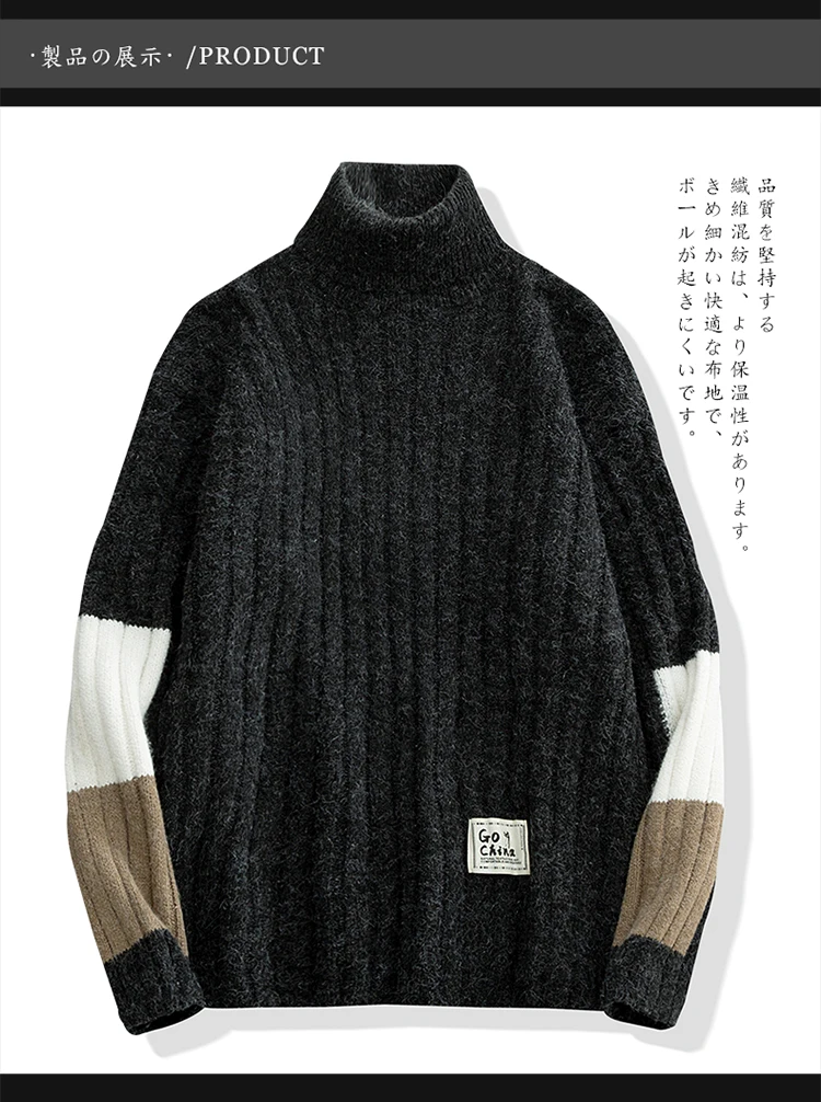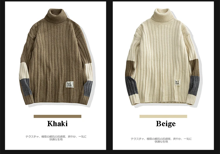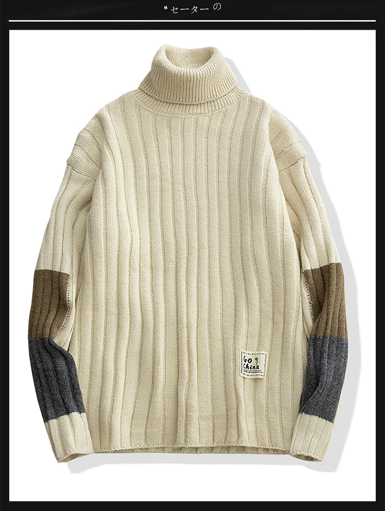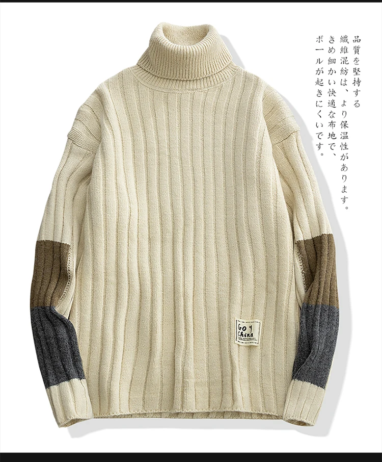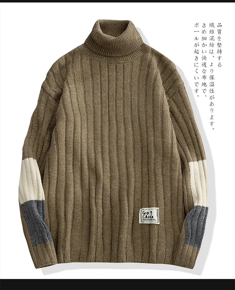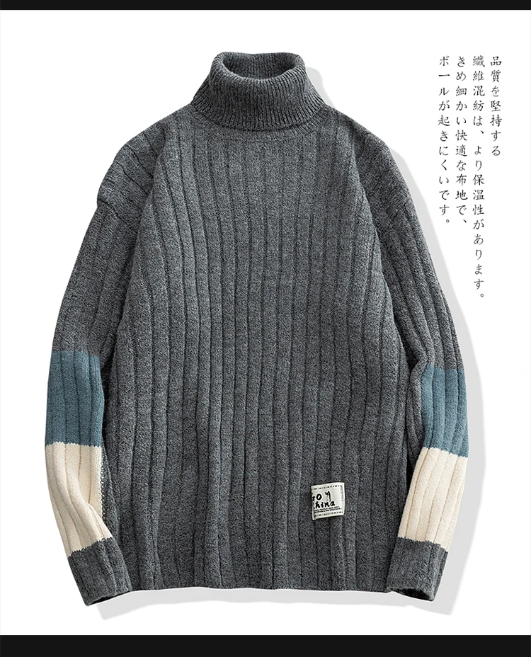 Зимние теплые мужские свитера с высоким воротником, японский Повседневный вязаный пуловер, джемпер высокого качества, Универсальные мужские свитера Harajuku