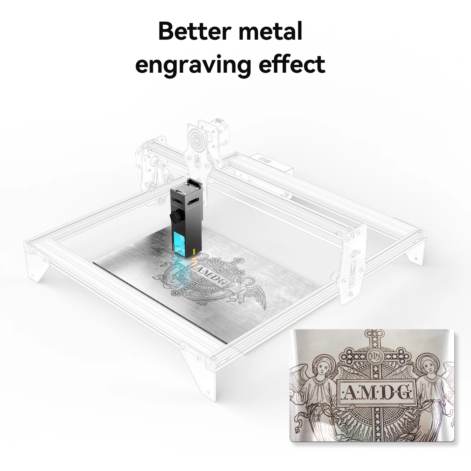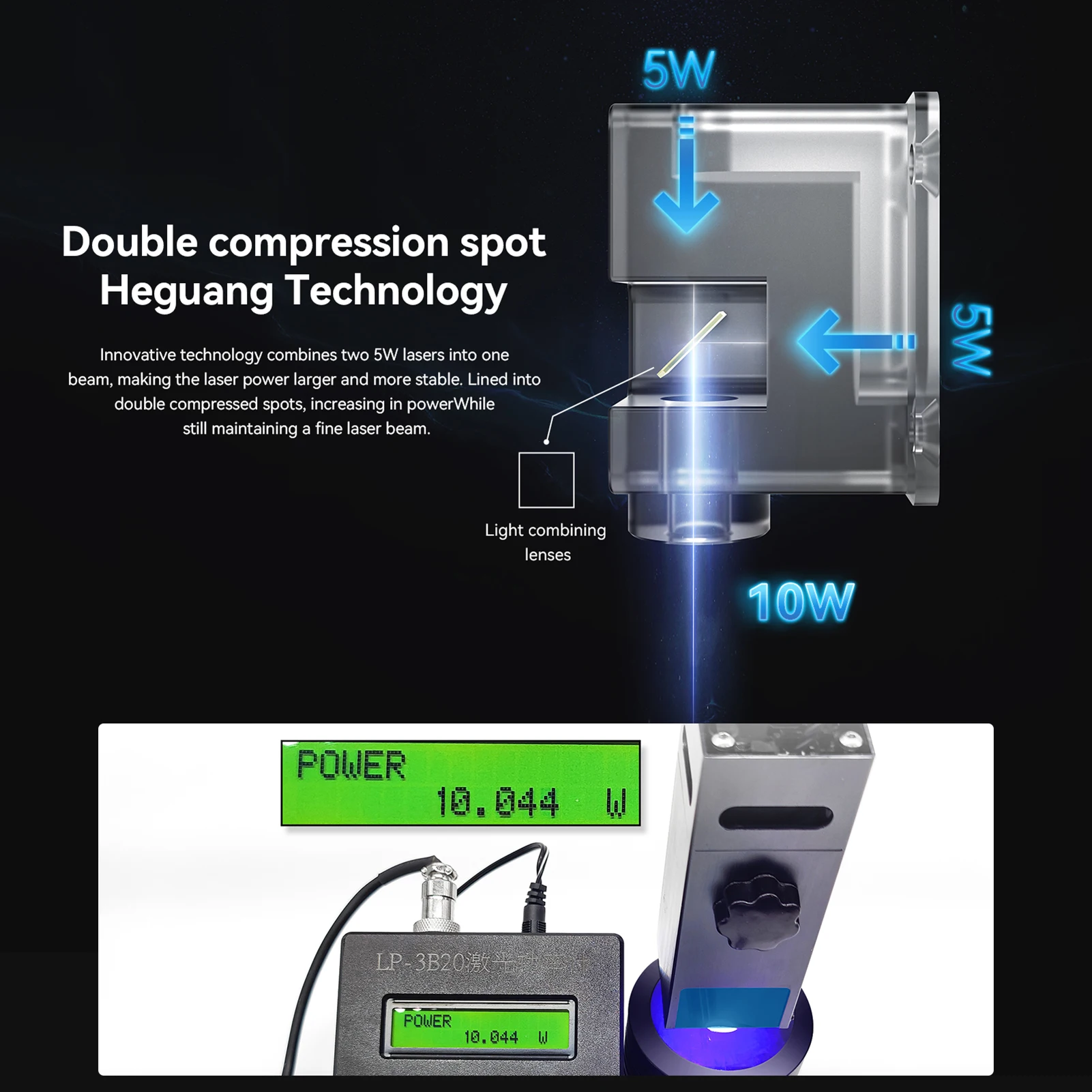 ▶0,08x0,06 мм двойной compre-онная Точечный светильник муфта технология делает гравировку более мощный и точный. Скорость гравировки 11000 мм/мин на 200% выше, чем у других лазеров 5 Вт.