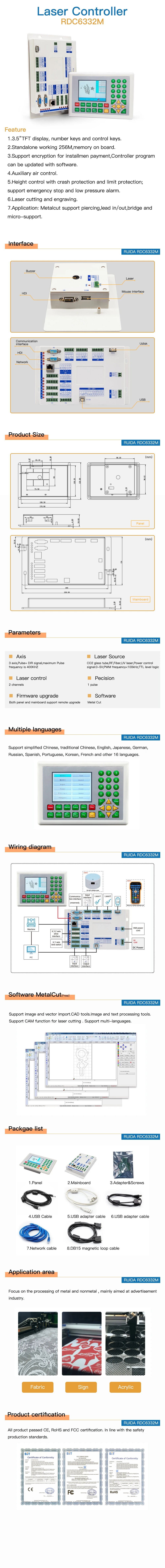 A1: система управления RDC6332M представляет собой набор гибридной режущей системы, специально разработанной технологией Ruida на основе зрелой системы управления RDC6332G, в сочетании с технологией обработки листового металла и неметаллической резки.