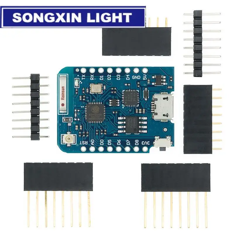 This is D1 mini, it is a mini WIFI board based on ESP-8266EX. 11 digital input/output pins, all pins have interrupt/pwm/I2C/one-wire supported(except D0) 1 analog input(3.3V max input) a Micro USB connection How to get started in : Setup driver Before you use miniD1 boards, you need setup CH340g driver. Python On Windows you need install Python 2.7.10. On Linux & MAC OSX, you don't need install it, comes preinstalled with OS. Installing Hardware package There is two ways to install hardware package, Boards Manager or GIT Installing with Boards Manager Starting with 1.6.4,for Arduino allows installation of third-party platform packages using Boards Manager. We have packages available for Windows, Mac OS, and Linux (32 and 64 bit). <1>. Install for Arduino 1.6.7 from the for Arduino website. <2>. Start for Arduino and open Preferences window. <3> into Additional Boards Manager URLs field. You can add multiple URLs, separating them with commas. <4>. Open Tools→Board:xxx→Boards Manager and install esp8266 by ESP8266 Community (and don't forget to select your ESP8266 board from Tools > Board menu after installation). Installing with GIT (Recommend): We recommend using GIT to install Hardware package, you can always get the latest version of it.