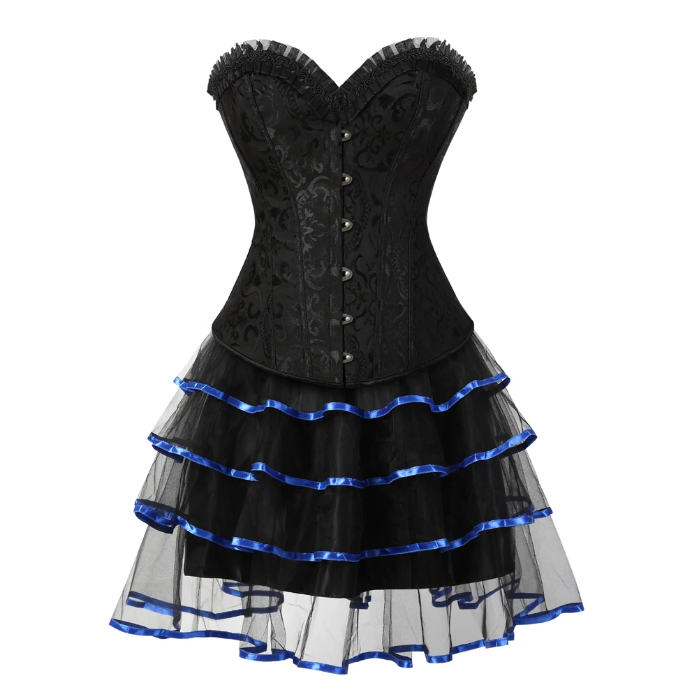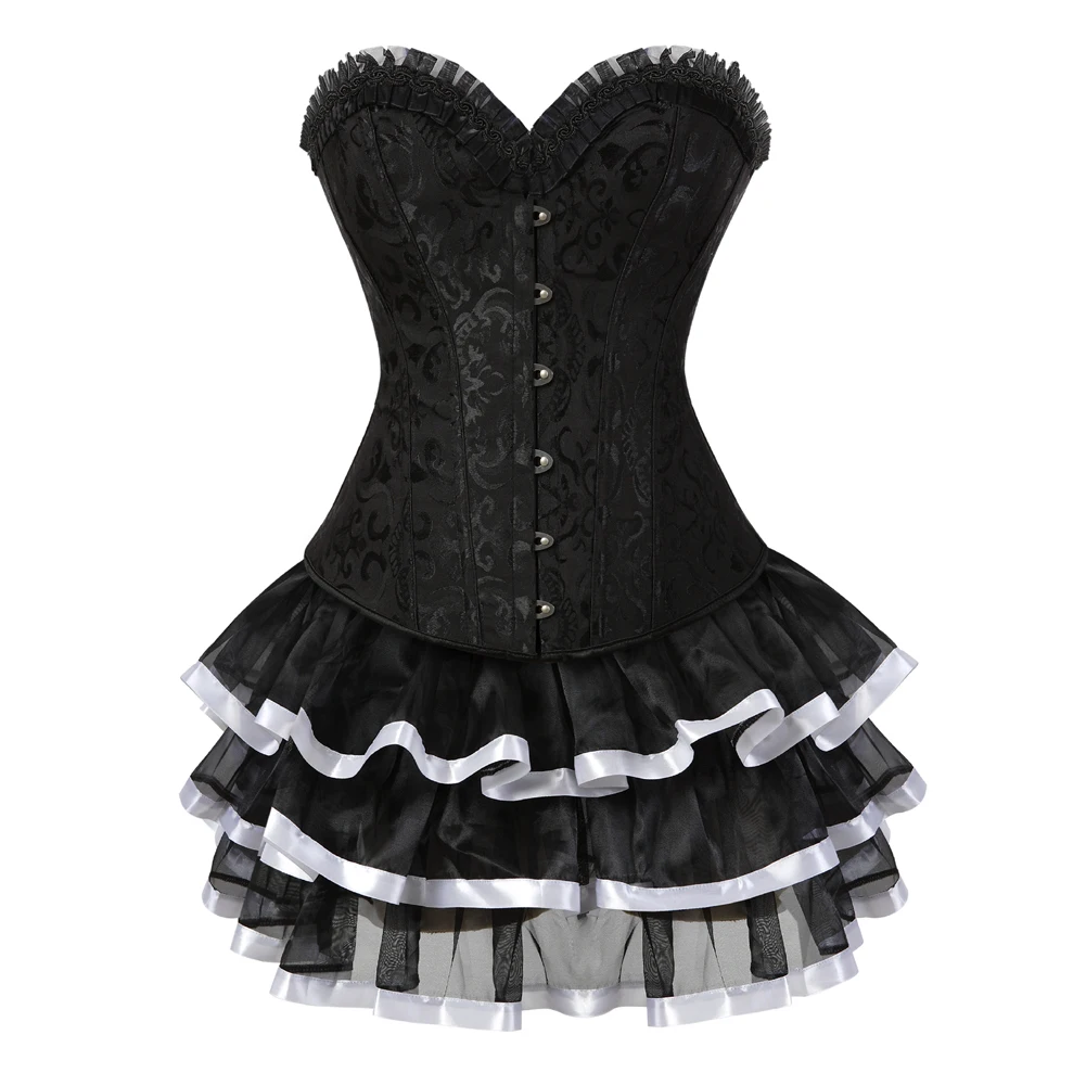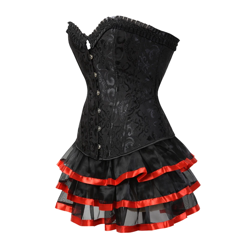 Женский Готический корсет со стальными косточками, топ с мини-юбкой-пачкой, сексуальный цветочный корсет, бюстье-Бурлеск, нижнее белье размера плюс S-6XL