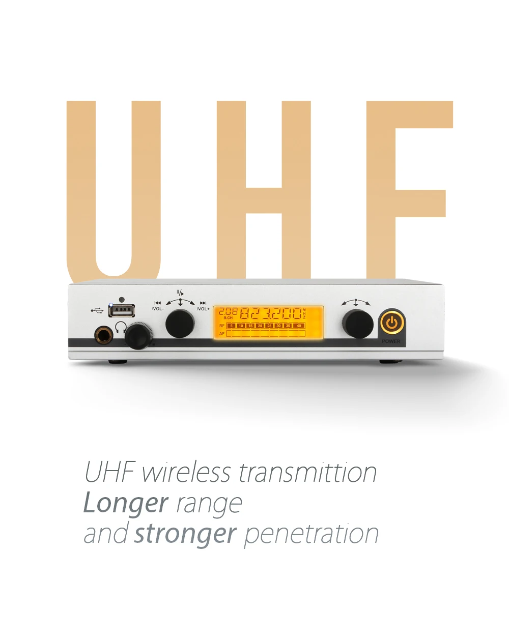 Простая настройка с универсальным использованием:Простая настройка с непрерывной частотой для оптимизации звука для этой персональной системы монитора. Наушники хорошего качества обеспечивают чистый звук и повышенную производительность. Он отлично работает в различных мероприятиях, связанных со звуковым мониторингом, сценической работой, студийной записью, выставкой, лекцией, инструкцией, речью и т. д.