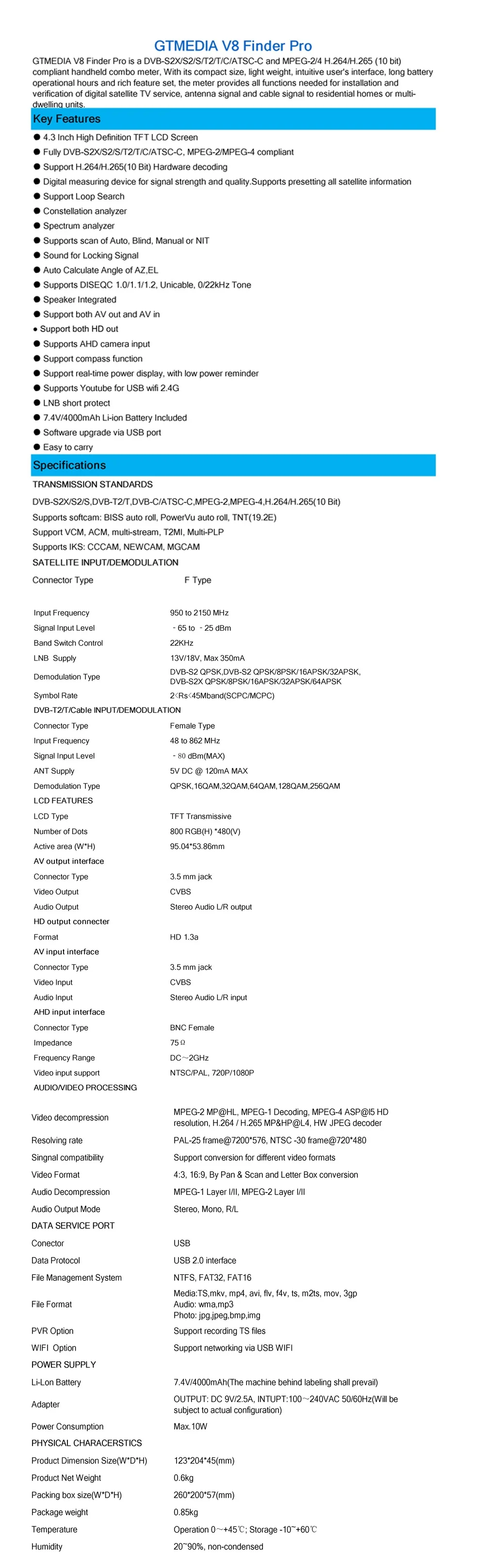 ● Полностью DVB-S2X/S2/S/T2/T/C/ATSC-C, MPEG-2/MPEG-4 совместимый | |