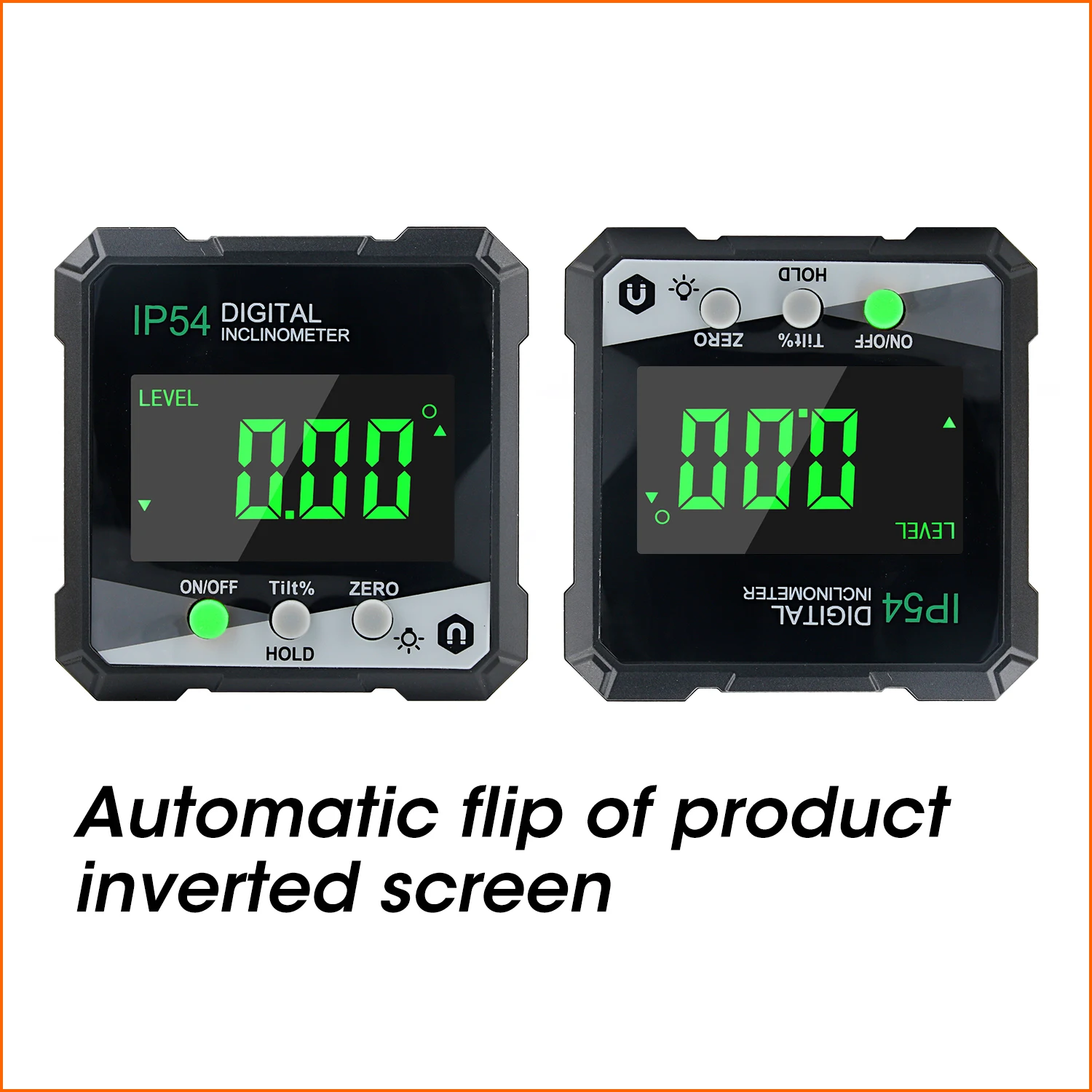 2. Автоматическое считывание: когда Инклинометр перевернут, угол считывания на ЖК-дисплее автоматически откидывается для удобного чтения