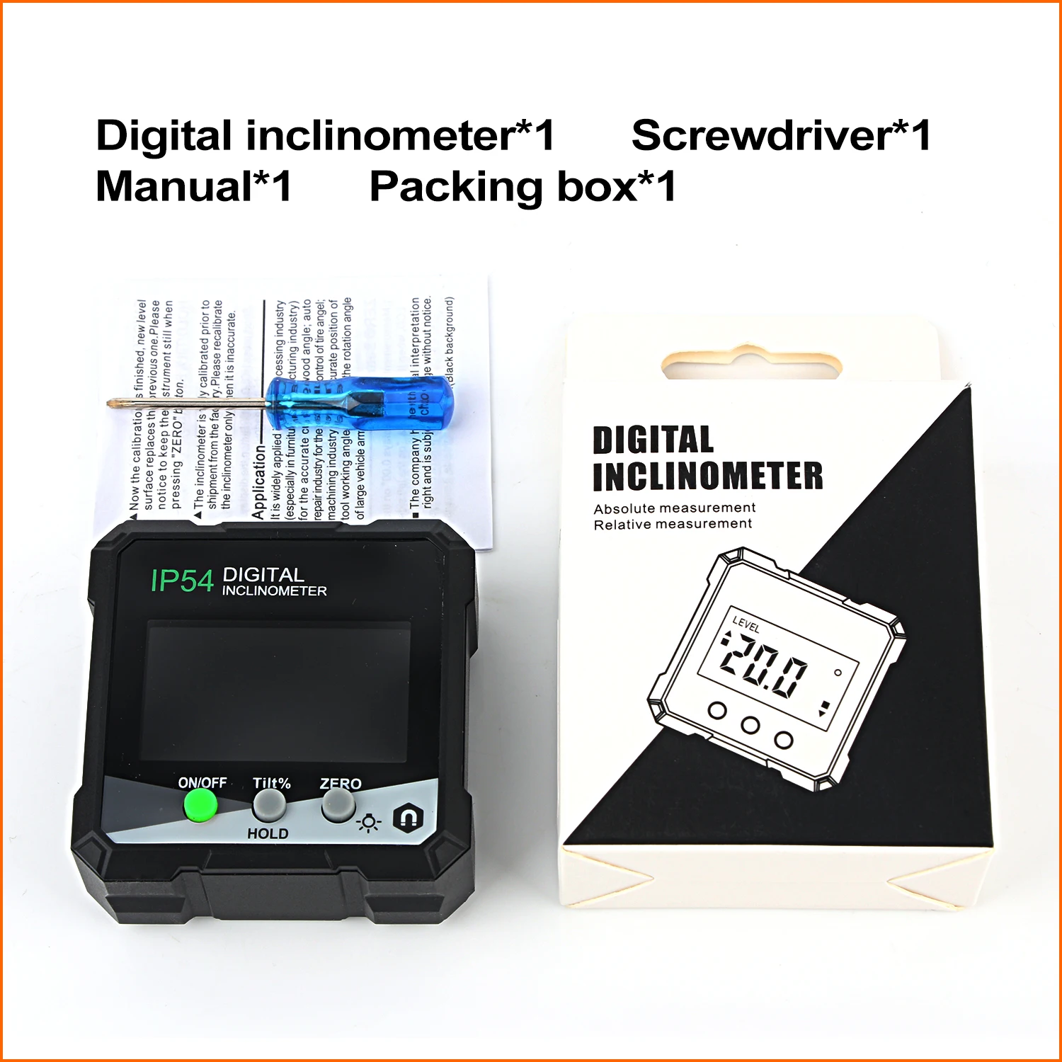 3. Автоматическое считывание: когда Инклинометр перевернут, угол считывания на ЖК-дисплее автоматически откидывается для удобного чтения