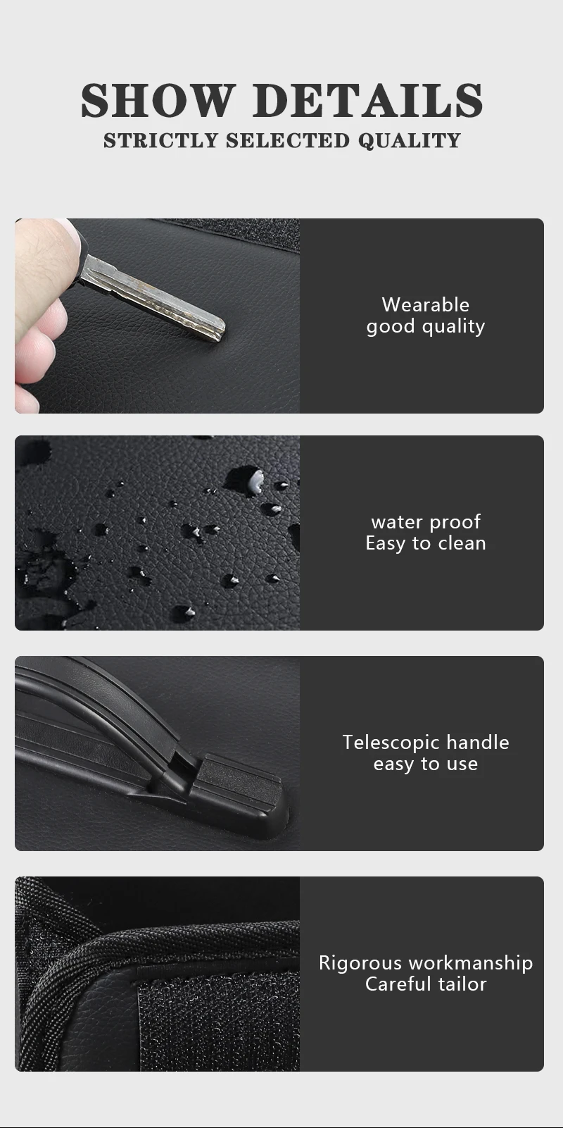 3. Изготовлен из водонепроницаемого материала из искусственной кожи и сохраняет ваши предметы, хорошо защищен от брызг и влаги. Он имеет красивый вид и превосходную отделку, очень прочный, устойчивый к истиранию и царапинам. Широкое дно обеспечивает стабильность и прочность;