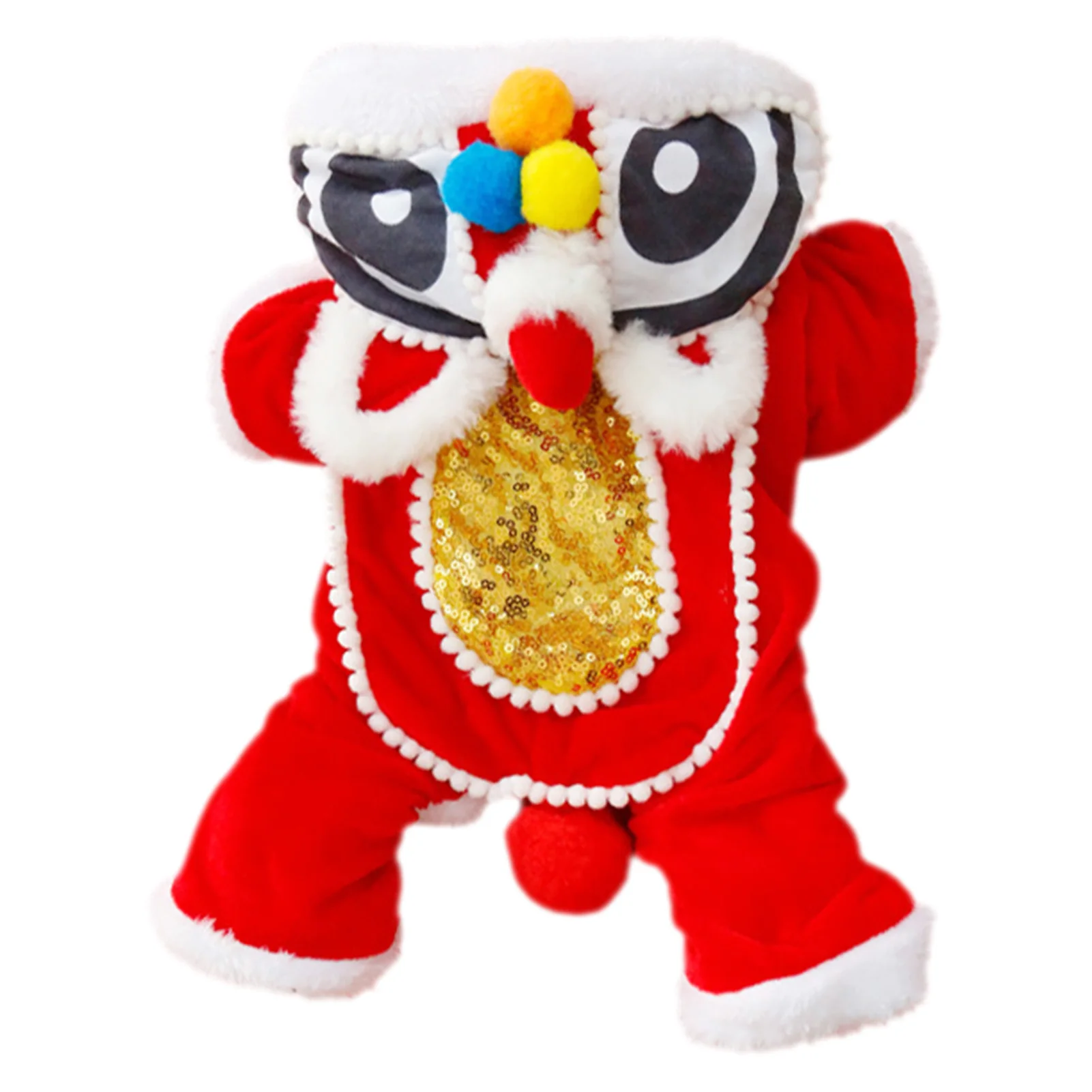 Изготовленный из мягких и приятных для кожи материалов, этот новогодний костюм для домашних животных очень подходит для ваших любимых домашних животных, может принести милый комфорт питомцам и не имеет чувства сдержанности. Он включает элементы дизайна китайского танцевального льва, который полон атмосферы фестиваля. Ваши любимые питомцы могут быть одеты как традиционные китайские фигурки для танцев льва. Каждый милый плюшевый друг хочет получить новый и идеальный подарок на Новый год. Это идеальный вариант.