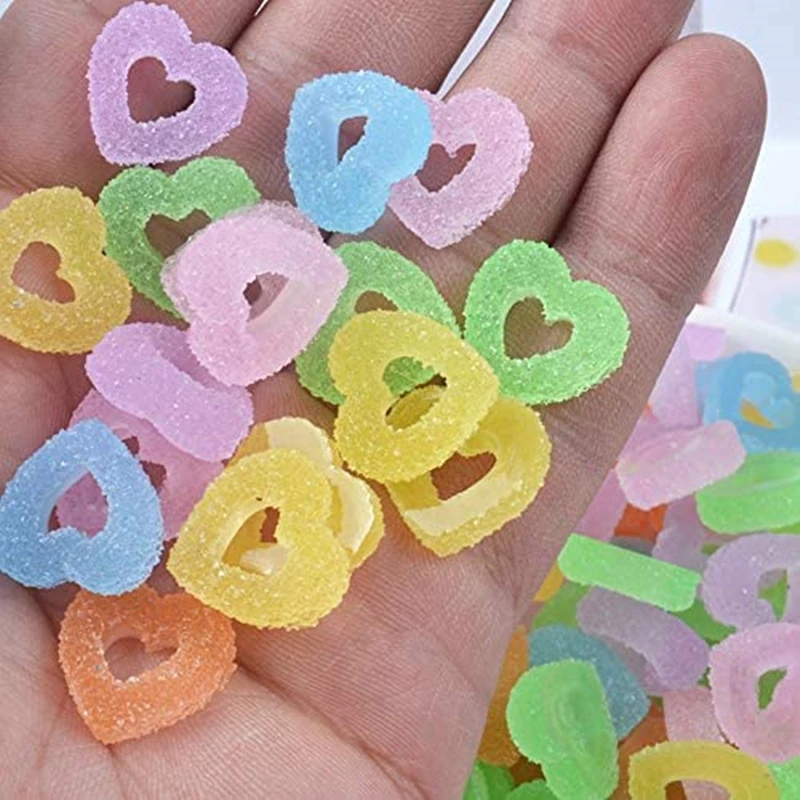 Kawaii Gummy Bear Nail Charm 10pcs/12x7mm Soft Candy Heart Nail Art Decoration Perfect for Nail Art Cabochons~ Kawaii ~30 Colors
