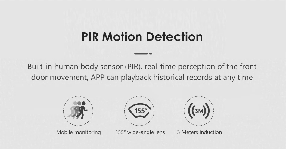 Встроенный датчик человеческого тела (PIR), восприятие движения фронтальной двери в реальном времени, приложение может воспроизводить истории в любое время.
