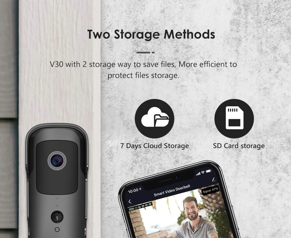 V30 с 2 способами хранения для сохранения файлов 7 дней облачного хранения и хранения sd-карт, более эффективно для защиты хранения файлов.