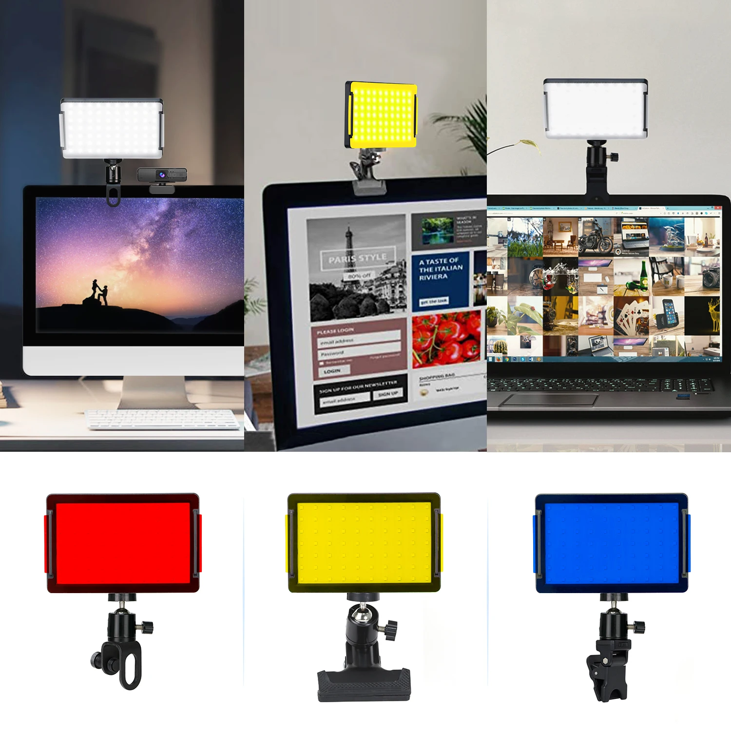 Используйте белые фильтры, чтобы смягчить светильник и настроить светильник s на каждой стороне ноутбука или монитора, чтобы вы выглядели хорошо освещенным на каждом видеозвонке. Кроме того, используйте белые фильтры с красными/синими/желтыми фильтрами для создания уникальных и красочных световых эффектов для потоковой передачи игр, Vlogging и многого другого.