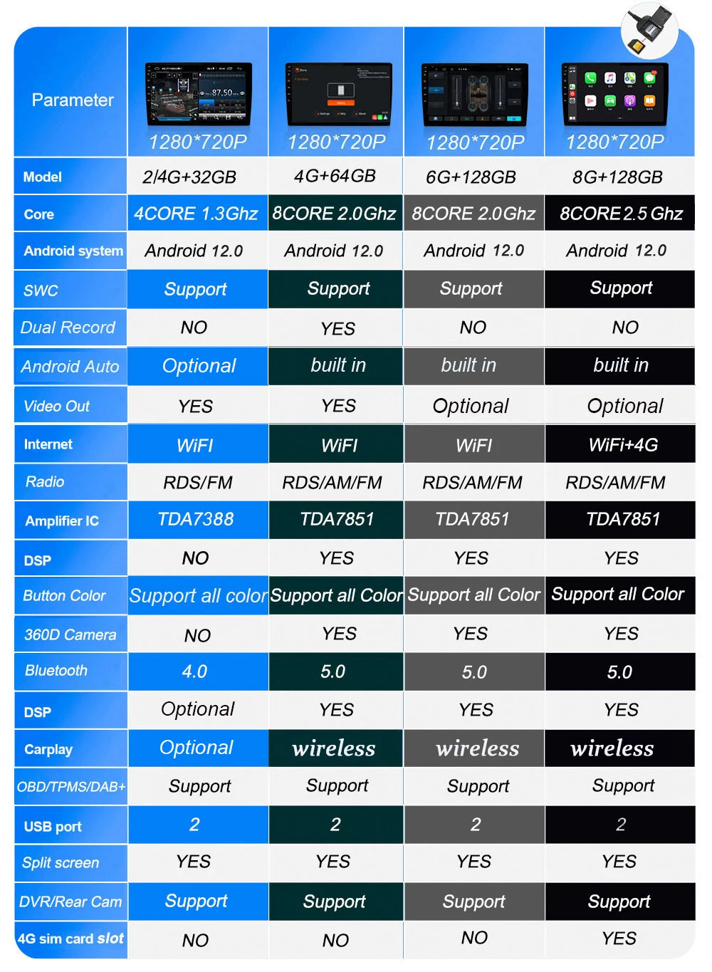 9 дюймов 2.5D емкостный Экран QLED (по желанию) + Quad /Octa Core 1,2/2,5 ГГц Процессор + 2GB (6 Гб опционально) флэш-память + 32 ГБ памяти (64/128 Гб опционально) + встроенный Wifi (4G сеть опционально) + gps-навигация (карта Бесплатная поддержка обновления) + управление рулевым колесом + зеркальная связь + Bluetooth + Встроенный микрофон + FM/AM + RDS (опционально) + Поддержка USB ADAS DVR Функция + Европейская DAB функция + 1080P Vedio Play + HD 1280*720 + контроль давления в шинах Система