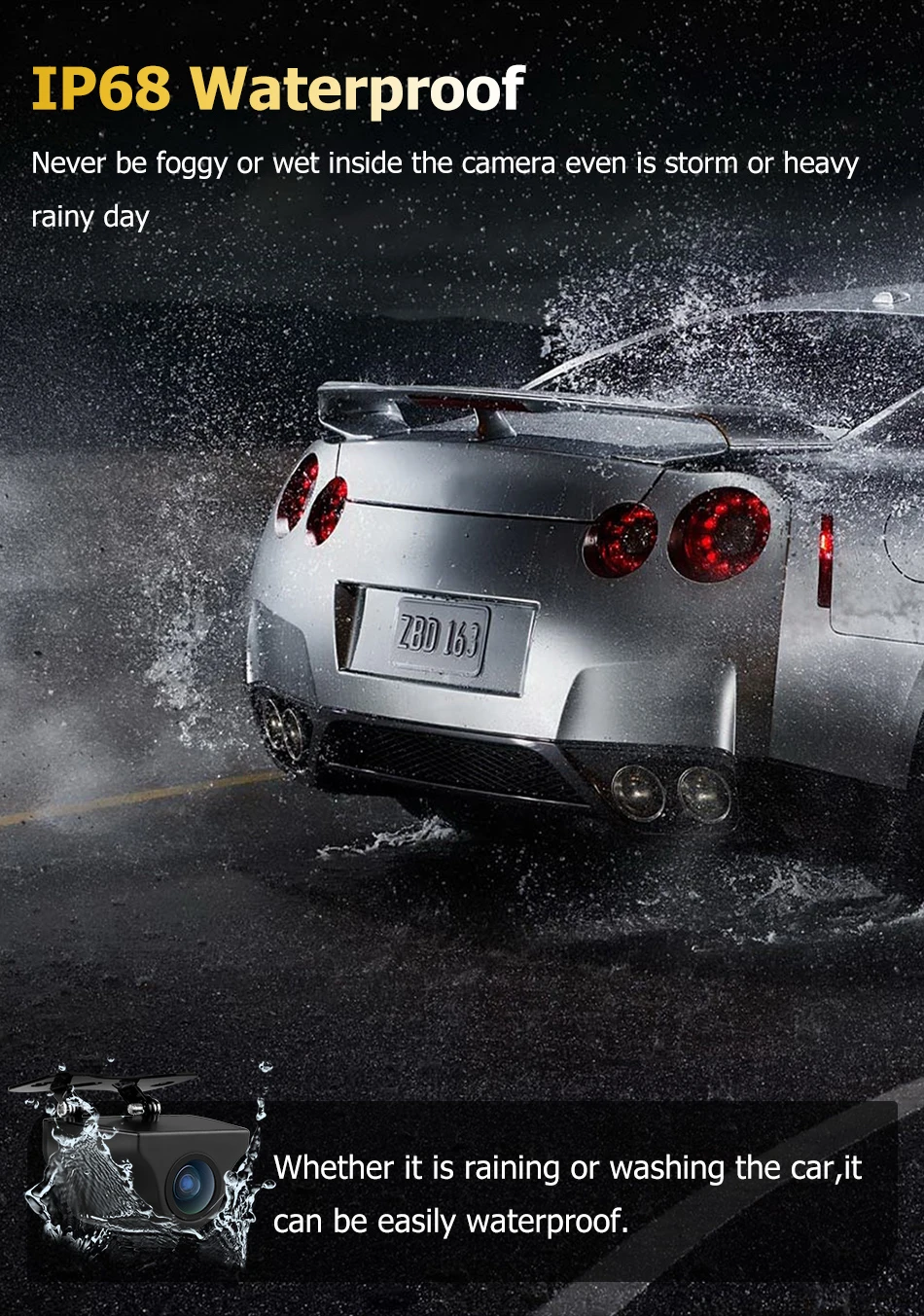 Устанавливается на номерной знак, выдерживает сильный дождь.