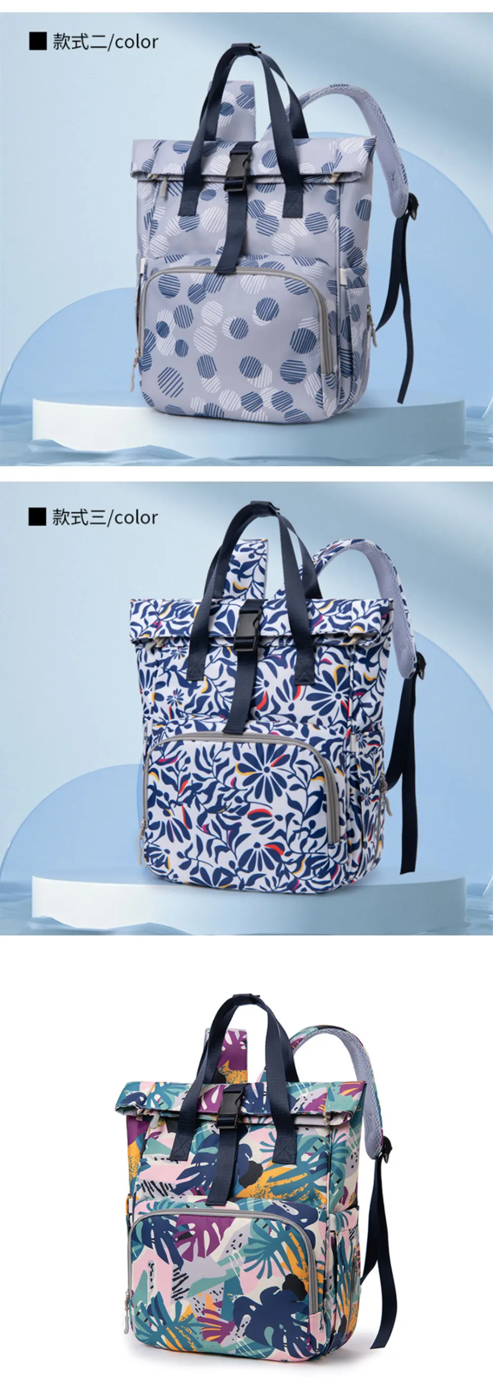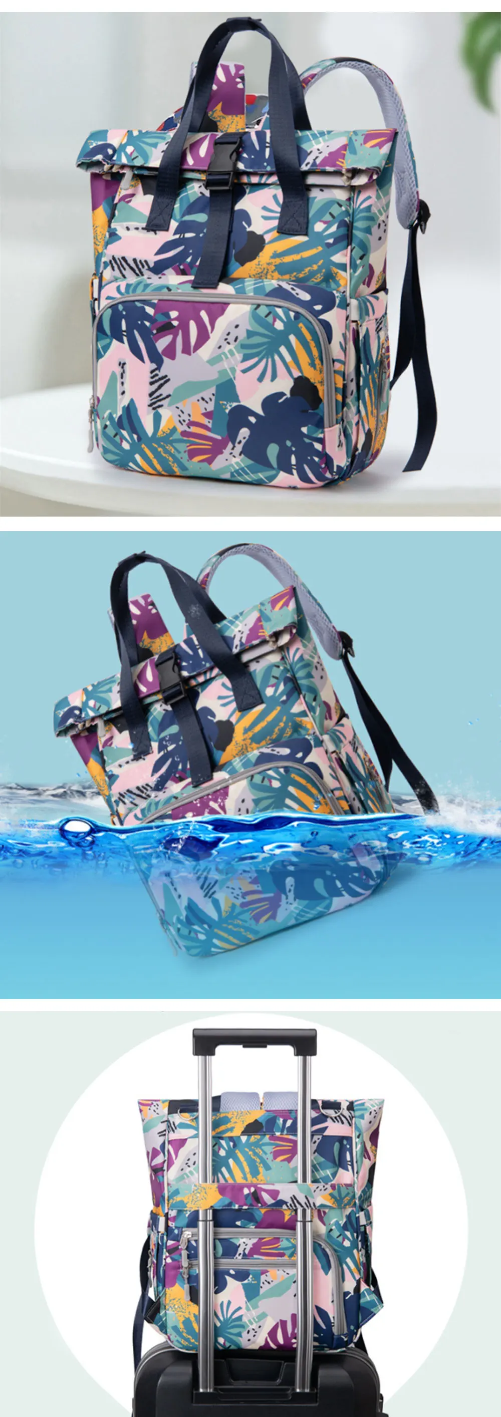 1. Большая вместимость, многофункциональная перегородка, аккуратно распределенные несколько карманов, отдельные сухие и влажные.2. Водонепроницаемый и противообрастающий, противообрастающий и устойчивый к пятнам.3. Хороший эффект сохранения тепла, независимая зона бутылочки для кормления, удобная и санитарная.Флуоресцентный