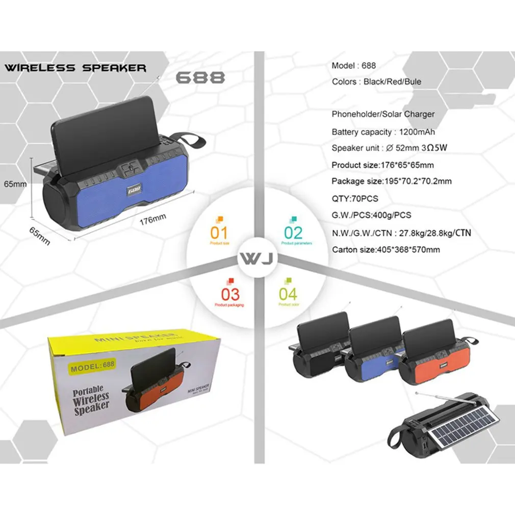 Особенности: 1. Он может быть заряжен солнечной энергией, с внешним съемным аккумулятором. Внешняя телескопическая антенна fm-радио автоматически ищет каналы. 2. Мобильный телефон с функцией держателя, встроенная беспроводная передача, мобильный телефон с беспроводным воспроизведением, поддержка функции громкой связи входящих звонков. 3. Поддержка воспроизведения MP3 песен, хранящихся на u-диске, и MP3 песен, хранящихся в tf-карте. Вы можете наслаждаться радостью прослушивания песен. 4. Он имеет функцию памяти и может продолжать играть после перерыва. Поддержка повторной зарядки. Поддержка все аудио вход от внешних 3,5 мм терминала. 5. Изготовлен из высококачественного АБС-материала, тонкое мастерство, прочный, не легко повредить, легко носить с собой, очень подходит для использования на открытом воздухе. Описание: Этот динамик может заряжаться от солнечной энергии и имеет внешнюю съемную батарею. Внешняя телескопическая антенна fm-радио автоматически ищет каналы. Характеристики: Материал: АБС-пластик + железная сетка Категория: Беспроводная Солнечная аудио Беспроводная версия: V5.0 Расстояние передачи: 10 метров Выходная мощность: 5 Вт * 1 Отношение сигнал-шум: ≥ 120 дБ Емкость аккумулятора: 1200 мАч Входной ток: 5 В постоянного тока Внутренний магнитный Рог: Φ52мм, 3Ω 5 Вт Размер: 176*65*65 мм Посылка включает в себя: 1 шт. * Динамик 1 шт. * зарядный кабель