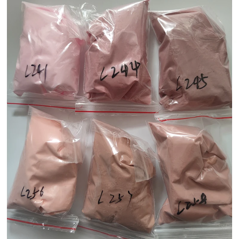 Розового, светло-бежевого цвета серии, которая имеет тонкое мерцание.