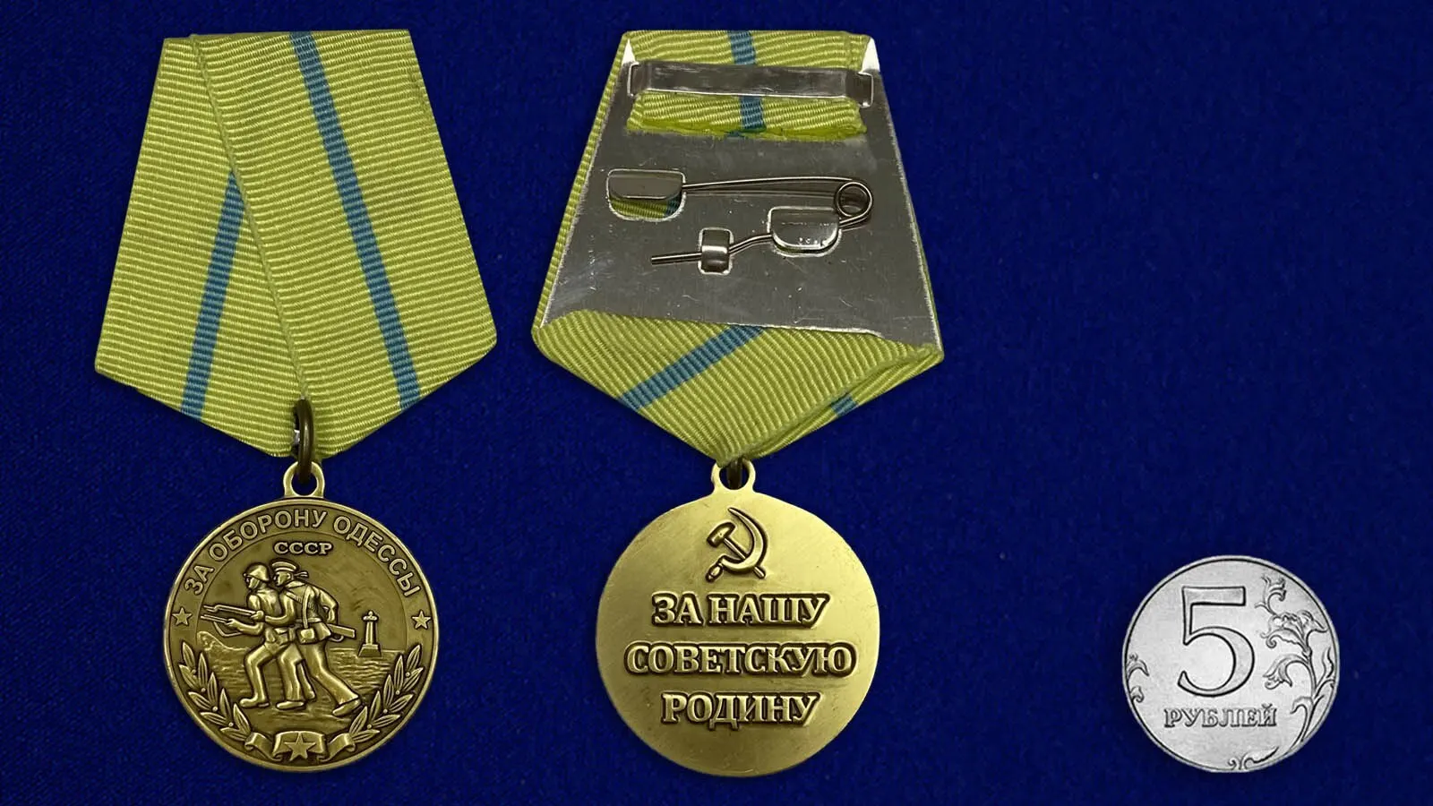 Внимание! Изделие не является государственной наградой! Гайка фиксации орденов и знаков может отличаться по размеру и форме от представленного на фото образца, продолжая выполнять основную функцию. Советская военная Сувенирная медаль "За оборону Одессы" (СССР) реплика Россия 17205 (0454703003)