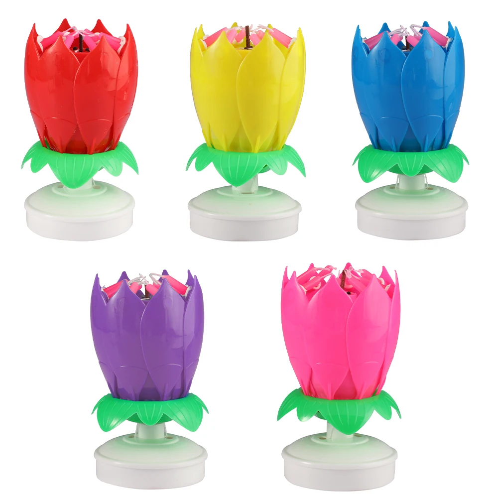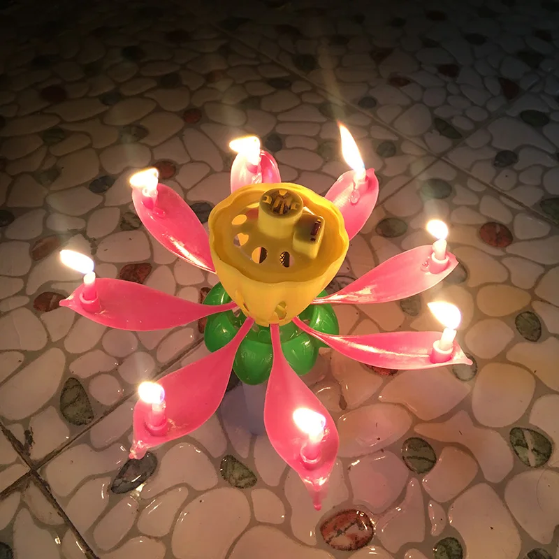 С Днем Рождения волшебный Удивительный цветок лотоса музыкальные вращающиеся свечи цветок подарок