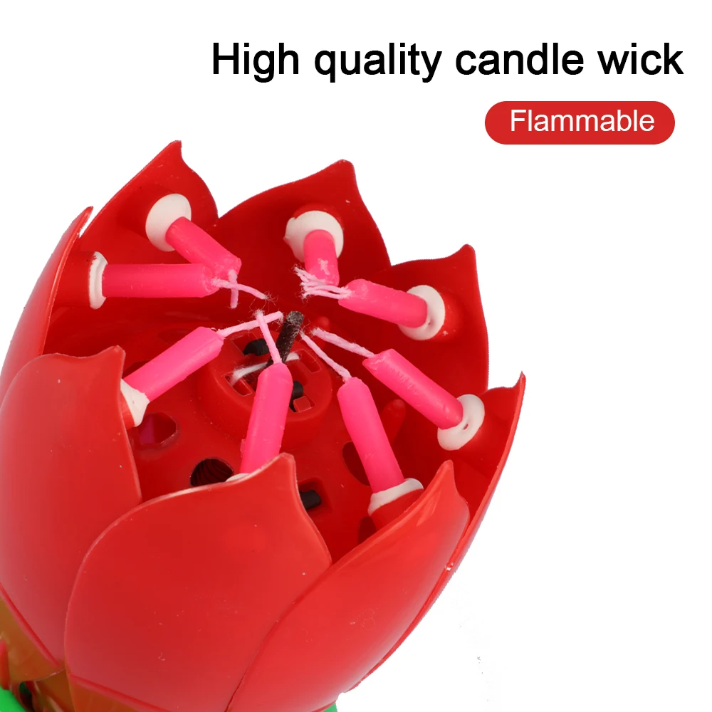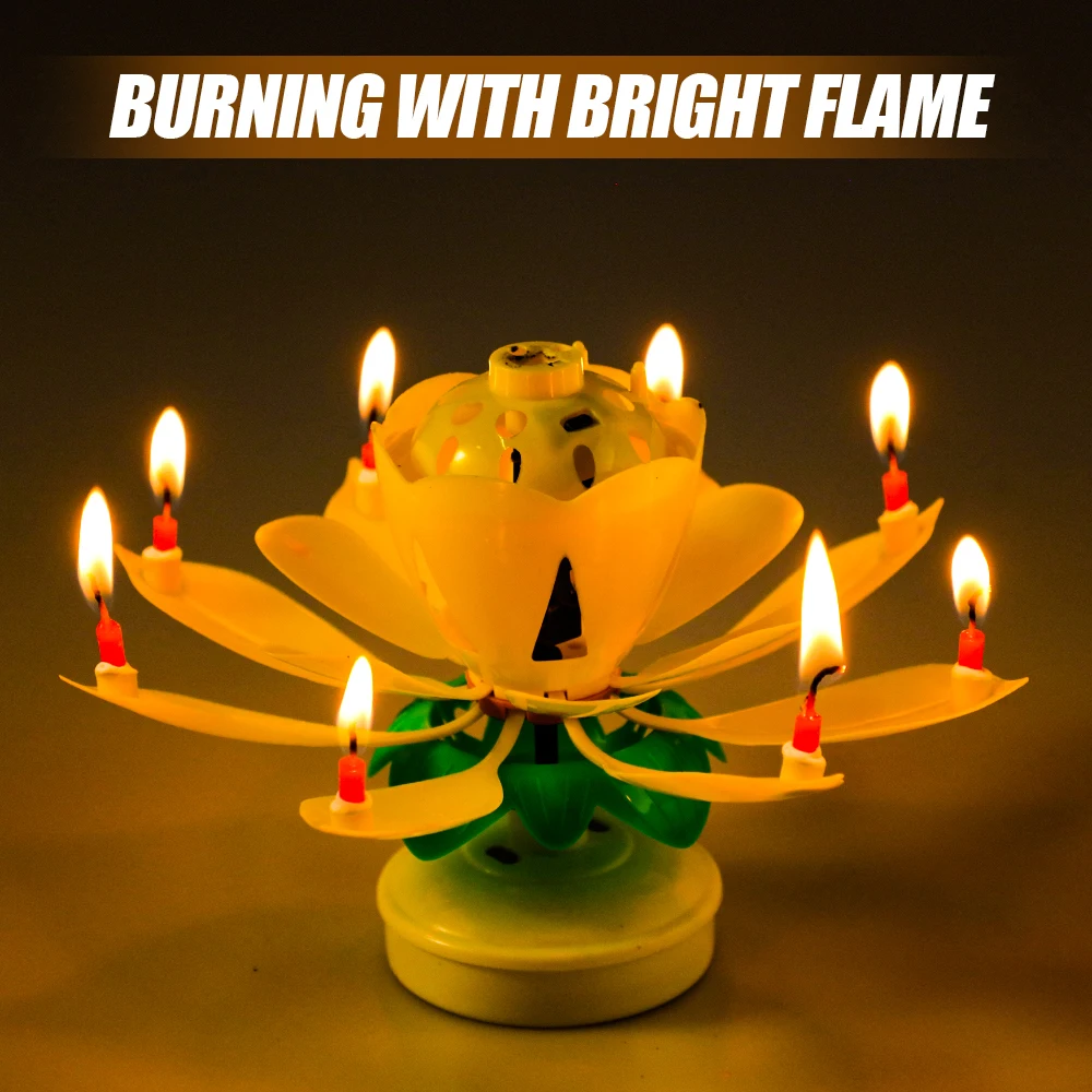 Эти музыкальные свечи в форме цветка лотоса на день рождения обязательно удивят толпу. Свеча Сначала появляется как закрытый бутон цветка. Как только вы откроете лепестки цветов и зажгите свечу на каждом лепестке. Он вращается и играет «С Днем Рождения вам».