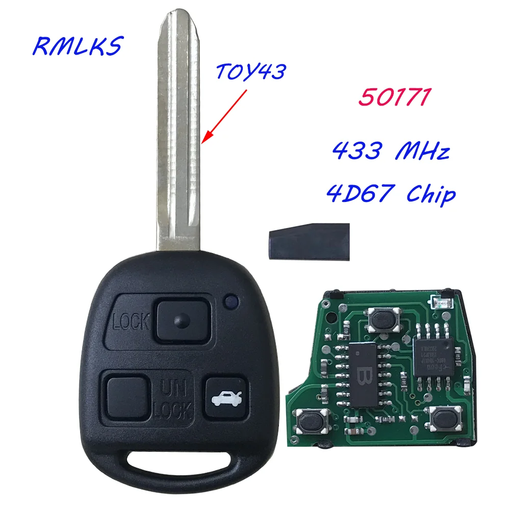 for Toyota Avensis Kluger Prado120 RAV4 Tarago Remote Control Car Key Fob 433MHz P/N 50171100% Brand NewPackage: 1pc keyFreqency: 433MHzTransponder Chip: 4D67Uncut Blade: TOY43Aftermarket key, no logo no part numbers on it.Before buying, please confirm your original key has below part numbers. Otherwise, this item will not work for your car.P/N: 50171, 42050Compatible with:for Avensis 10/2003-2010for Kluger 8/2003-5/2007for Prado120 09/2004-08/2009for RAV4 7/2003-11/2005for Tarago 4/2003-1/2006Please ensure your current key and the key blade fit exactly the same as the key sample picture.