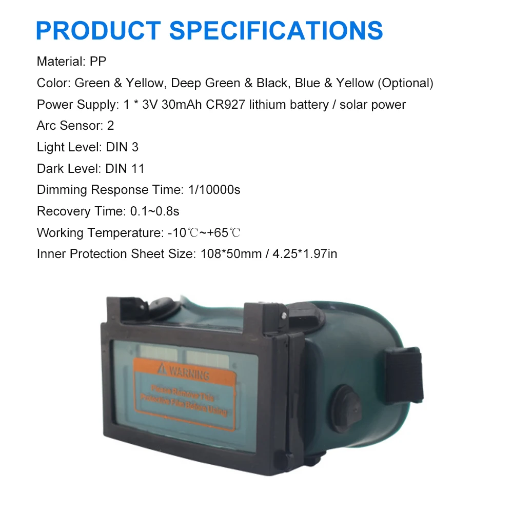 Оригинальный дизайн технологии автоматического преобразования-это uesd цепи управления, что позволяет очкам отреагировать на arcin 3/10000 секунды и изменить сильный светильник на темный светильник. В результате, он может защитить наши глаза от травм от внезапной дуги.