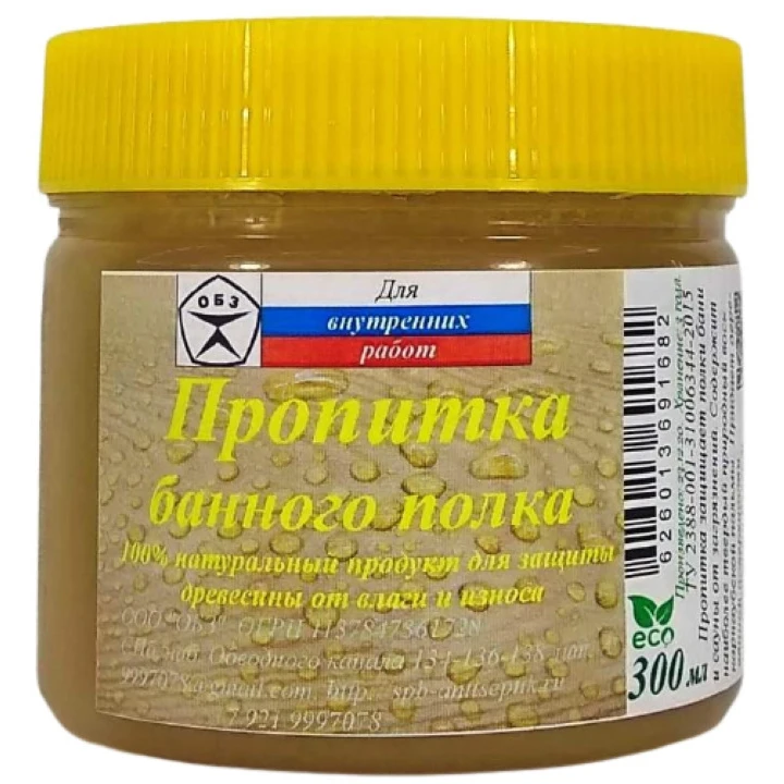 Пропитка для банного полка является на 100% природным продуктом, полученным на базе апельсинового, льняного, тунгового масла, природных восков и смол.