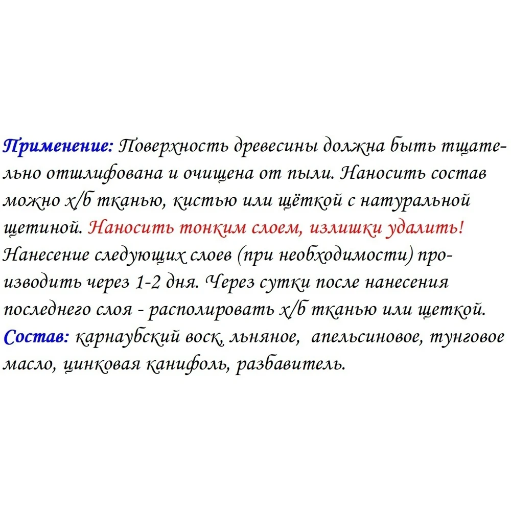 | Коммерческий тип | Масло, воск для дерева |