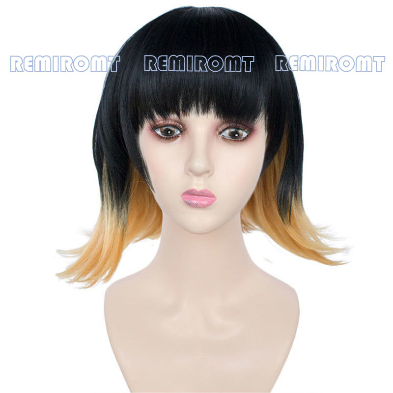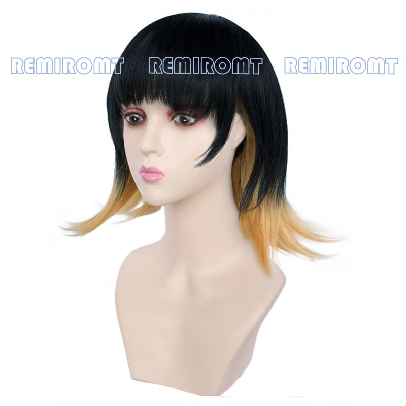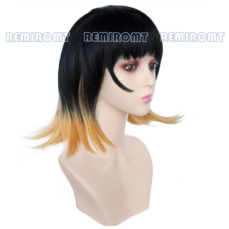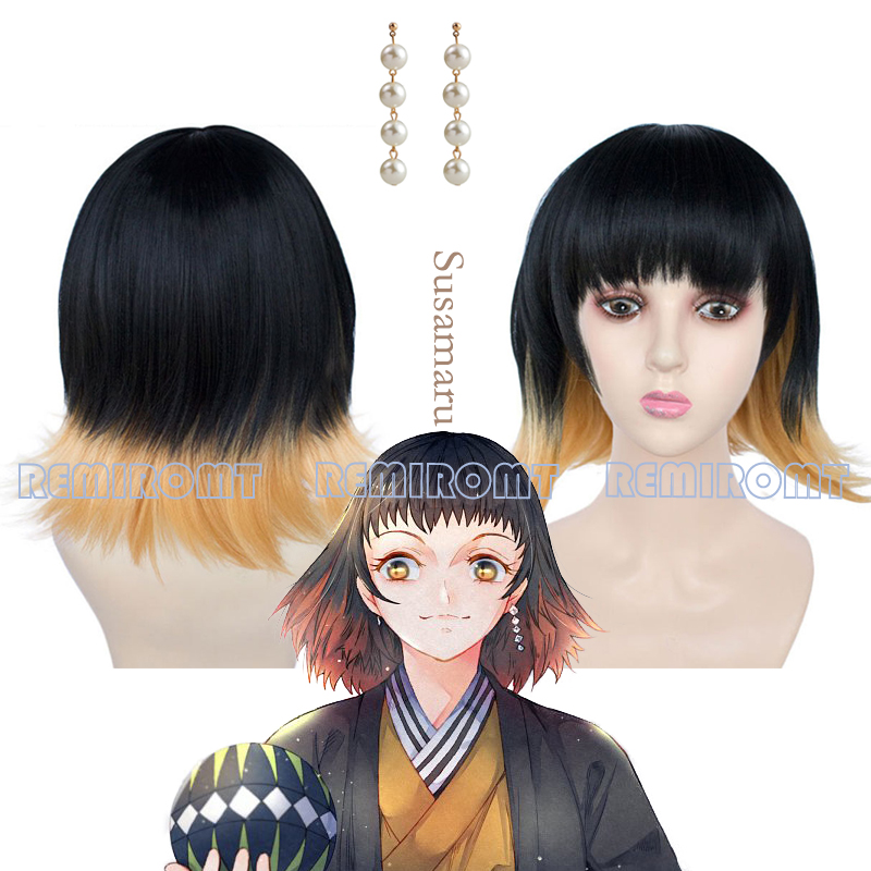 Susamaru парик демон Slayer Kimetsu No Yaiba Аниме Косплей серьги короткие черные до оранжевые градиентные волокна волос темари демон парик шапка