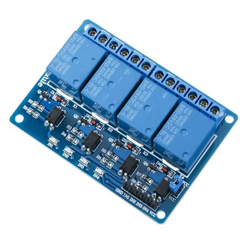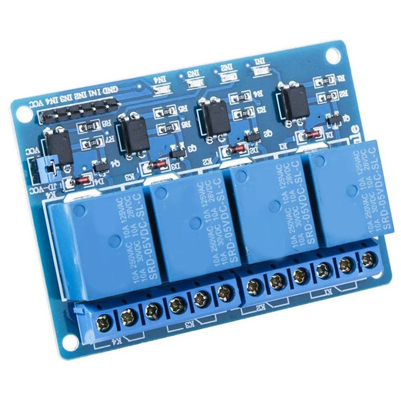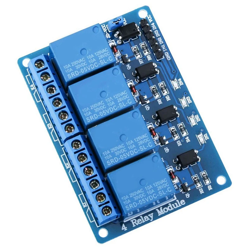 4-Канальный Релейный интерфейсной платы, которая может быть контролируются напрямую широкий спектр таких как AVR, PIC, ARM, PLC, и т. д. Он также может управлять различными приборами и другим оборудованием с большим током. Широко используется для всех MCU контроля, промышленный сектор, PLC контроль, умный дом контроль.